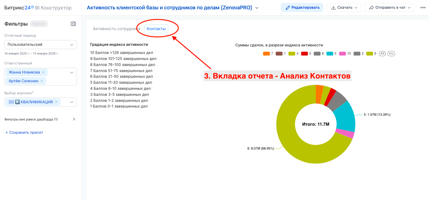 Отчет Анализ Клиентской базы исходящей активности Сотрудника