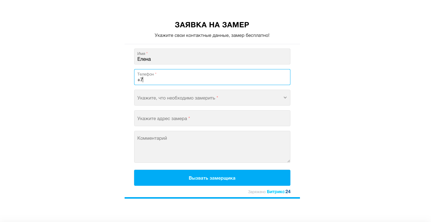 - получена заявка на замер
