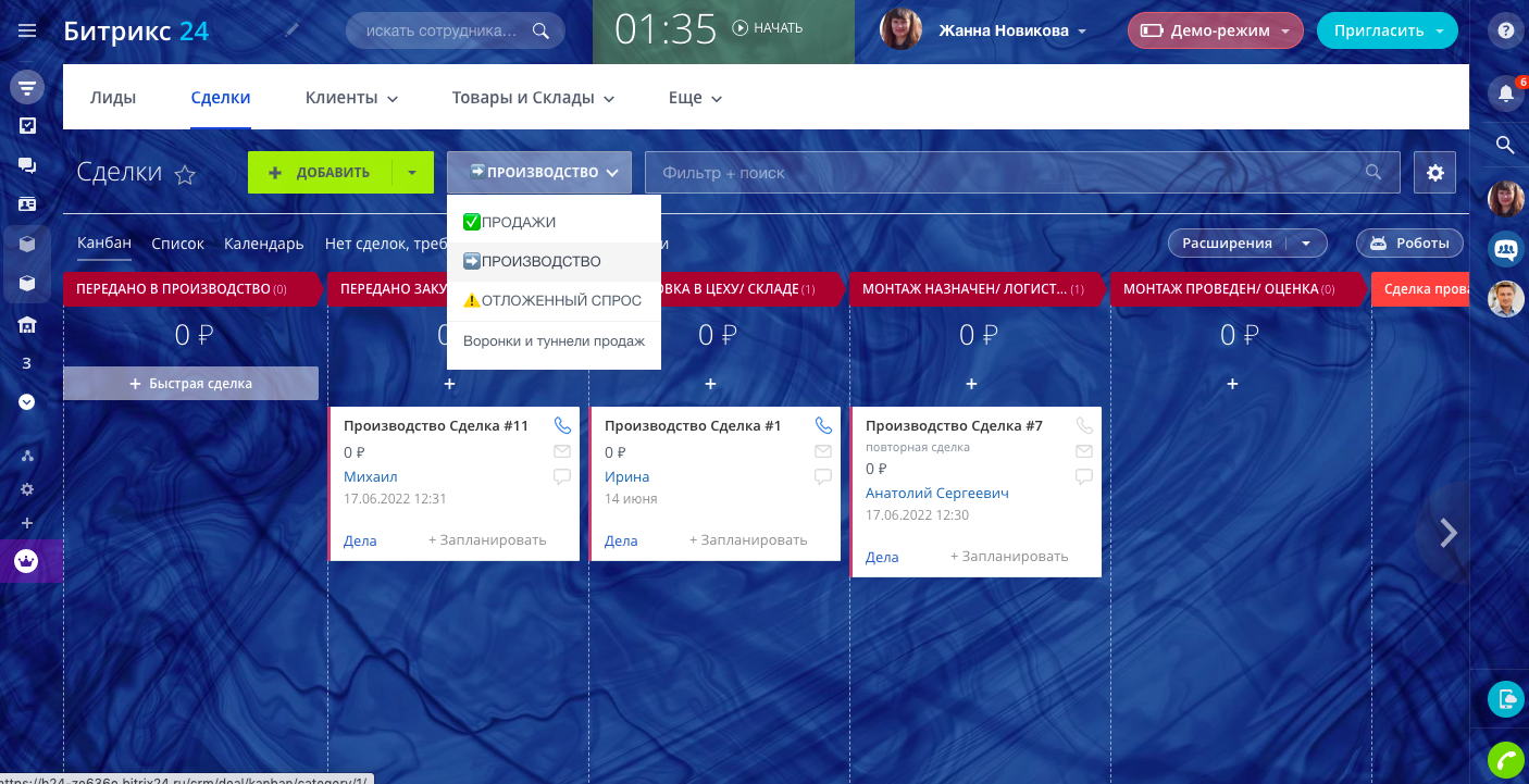 - Воронка производства с системой обязательных полей