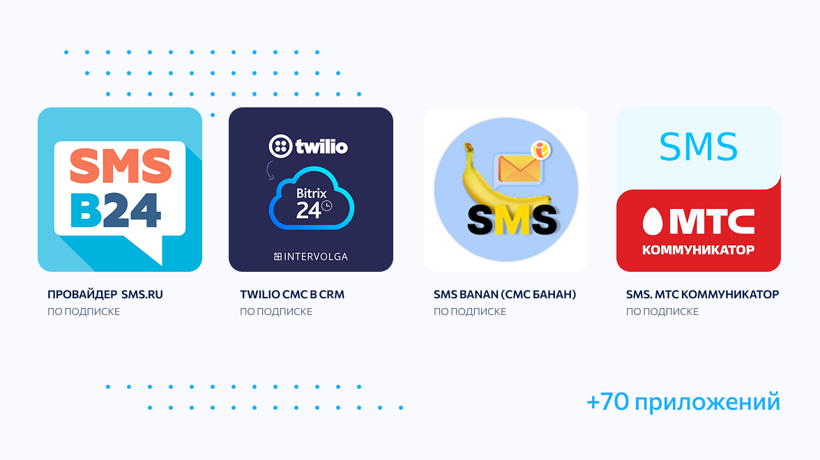 Отправляйте SMS по базе контактов из CRM — такой способ напомнить о себе в разы дешевле других видов рекламы. В этом вам помогут сервисы для рассылки из Маркетплейса + BitrixGPT.