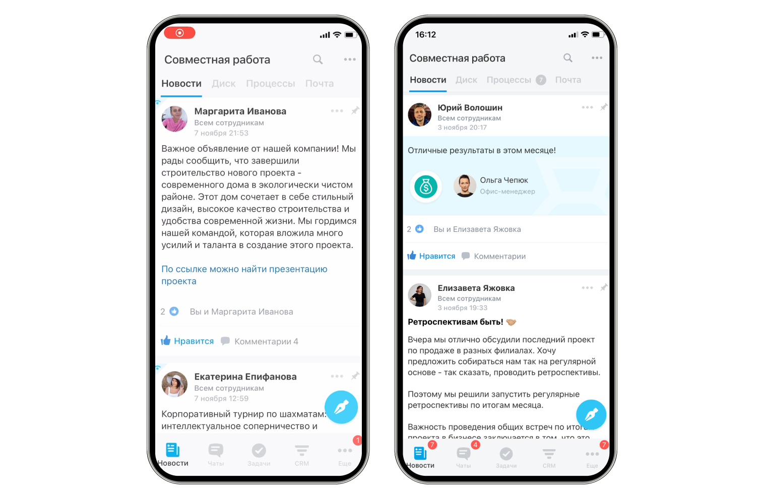 Публикуйте посты о событиях компании, комментируйте коллег и делитесь фото. Привлекайте внимание яркими обложками. Будьте в курсе новостей и участвуйте в обсуждениях. Ваши действия заметят руководитель и коллеги.