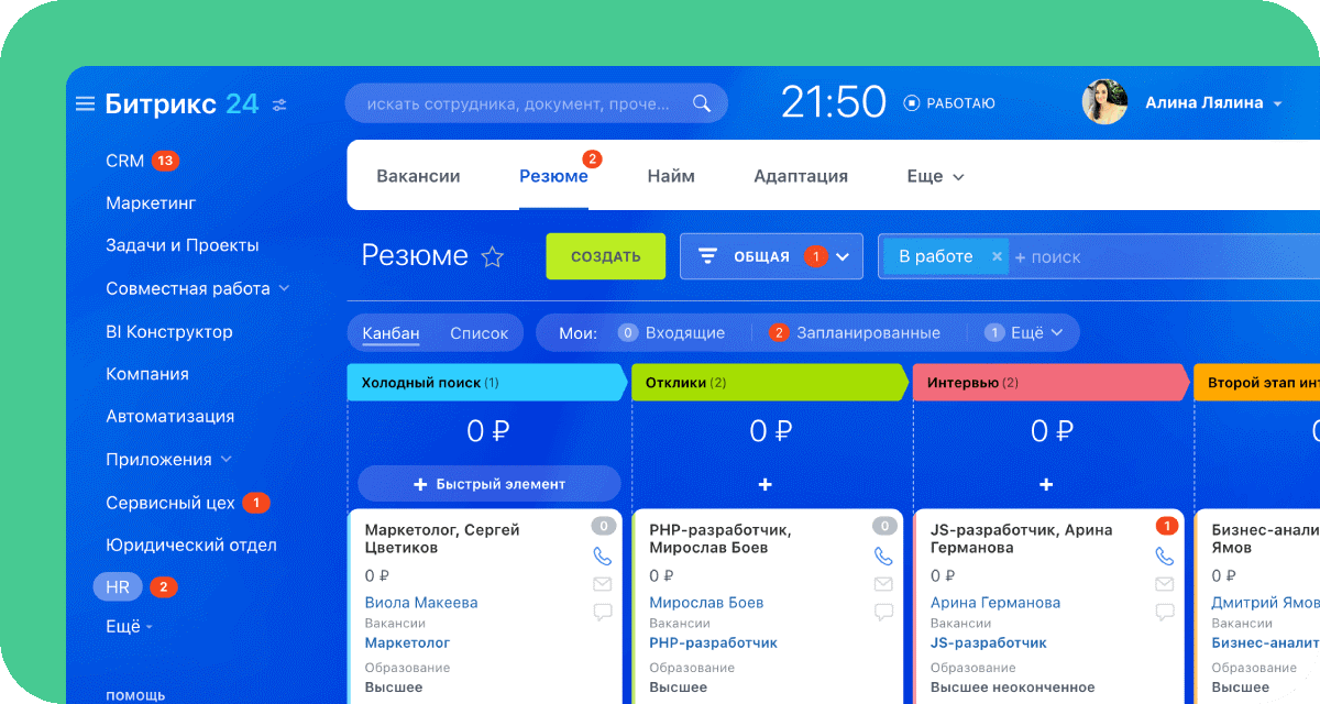 Создайте уникальное настроение на главной странице вашего Битрикс24. Используйте готовые шаблоны, добавляйте корпоративные цвета и дизайн, выносите виджеты нужных сервисов, делитесь новостями.