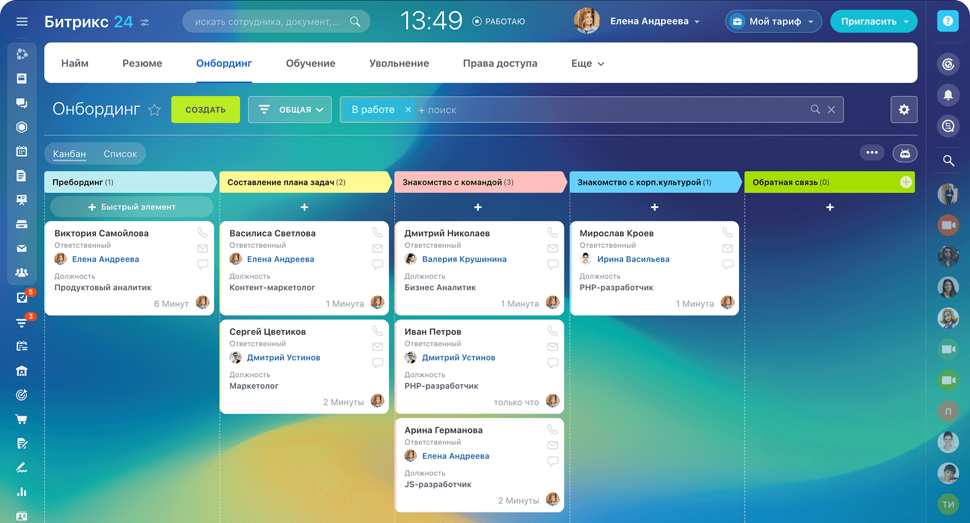 Когда новый сотрудник выйдет на работу, его карточка автоматически попадет