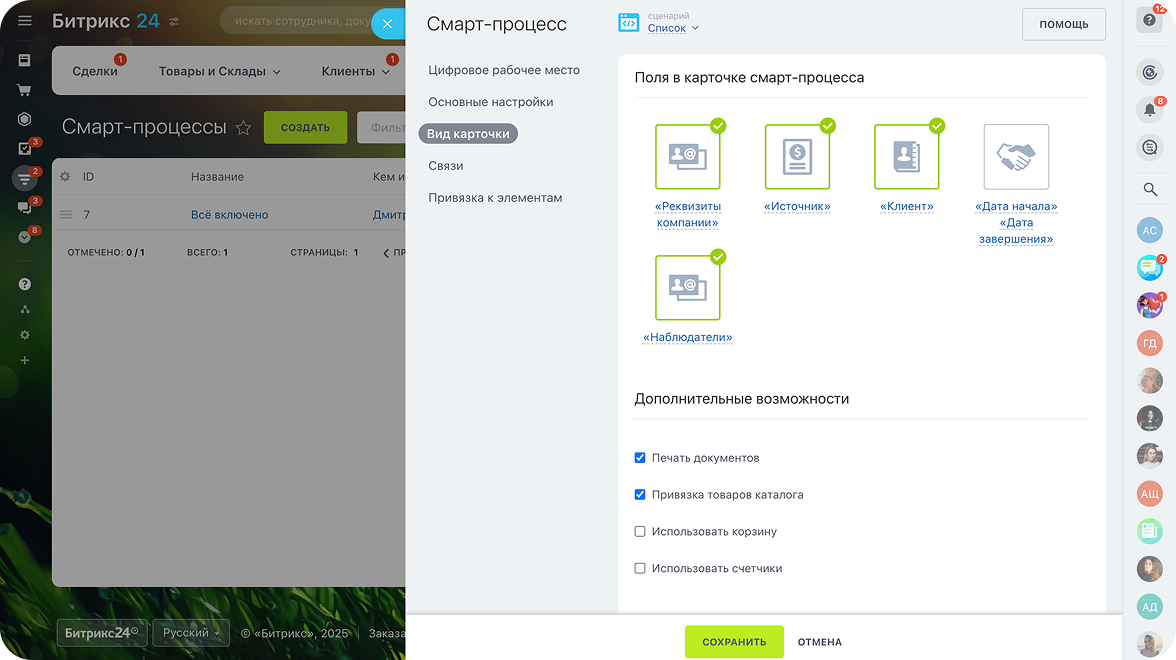 Цифровое рабочее место от Битрикс24 легко адаптируется к росту вашего бизнеса. Вносите изменения в процессы без программирования — отлаженная система будет работать как часы.