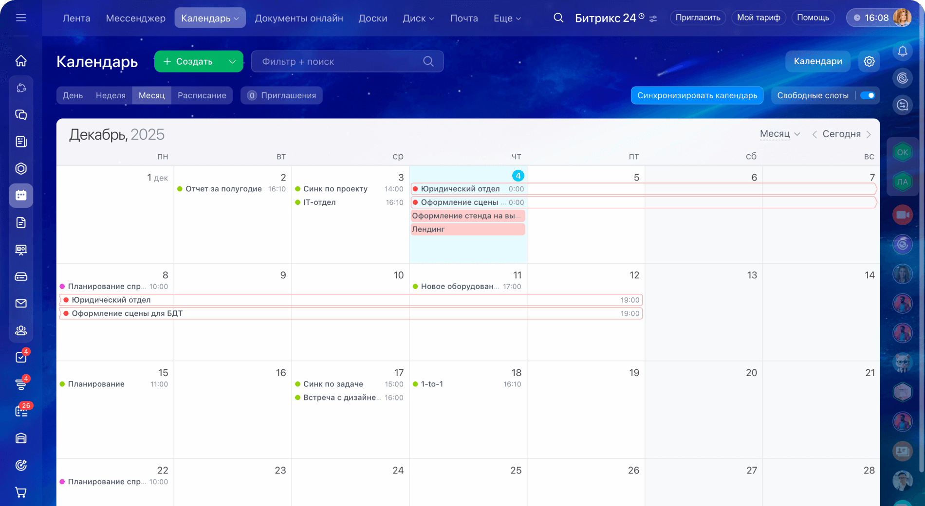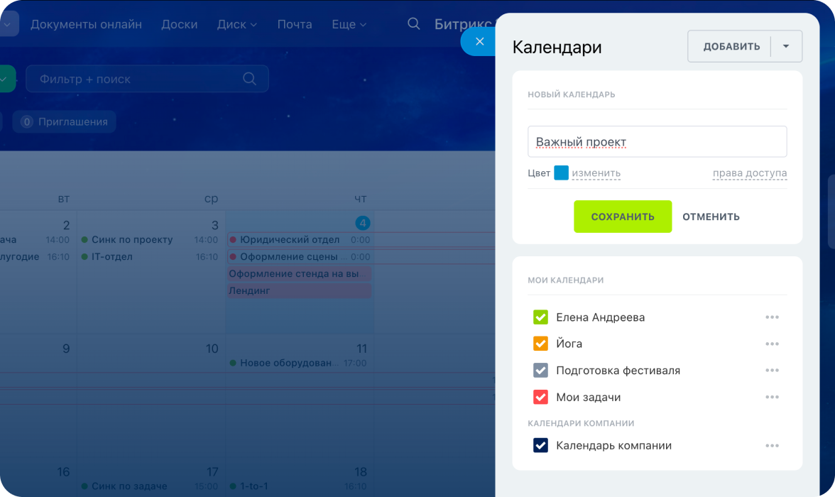 Что доступно в календаре Битрикс24?