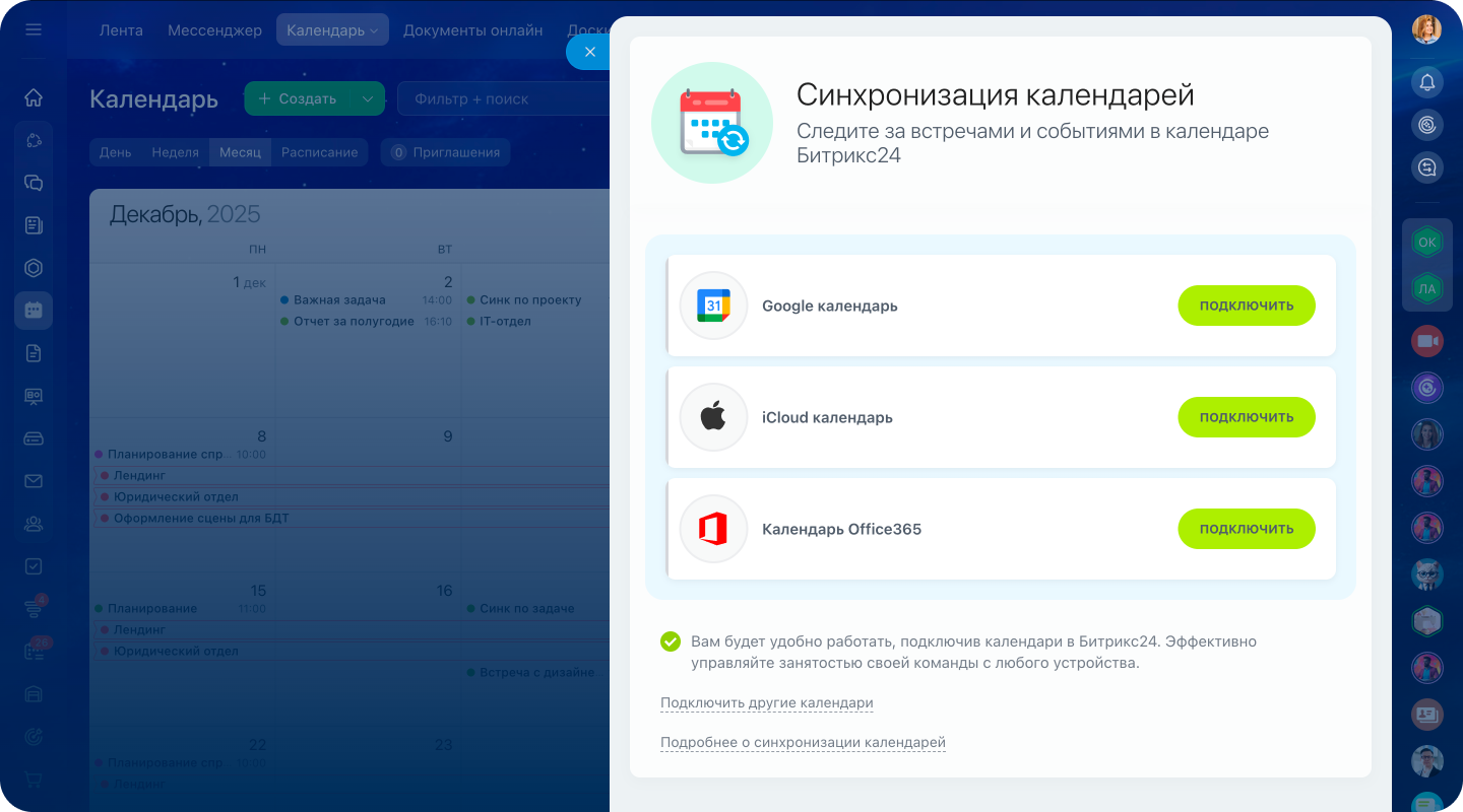 А еще календарь Битрикс24 можно синхронизировать с мобильными устройствами.