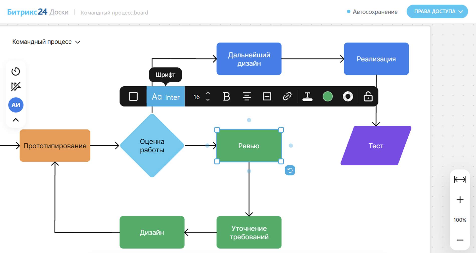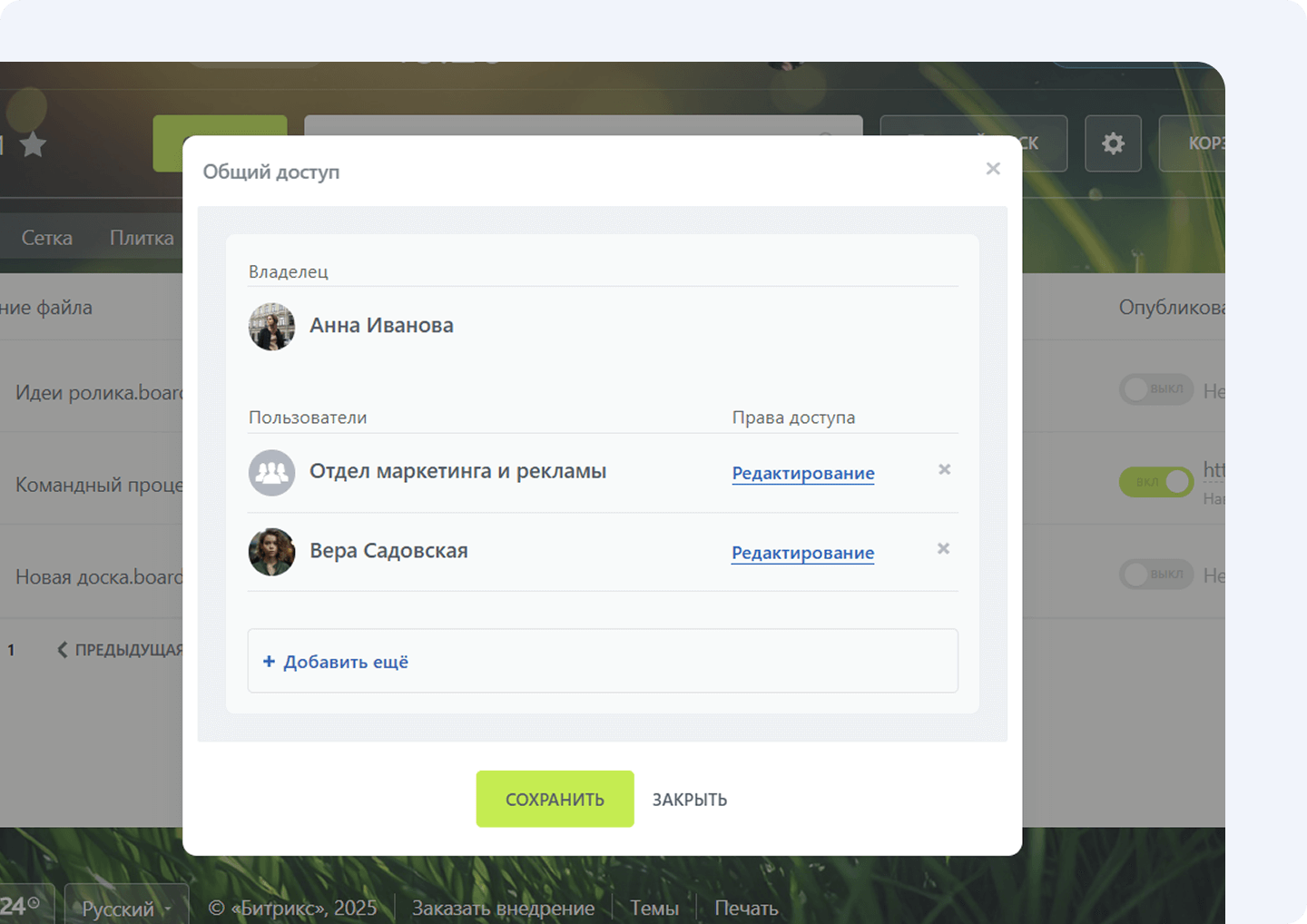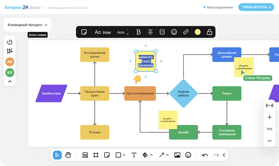 Не нужно жонглировать разными сервисами, раздавать к ним доступы и пересылать неизвестные ссылки — онлайн‑доски уже есть в Битрикс24.