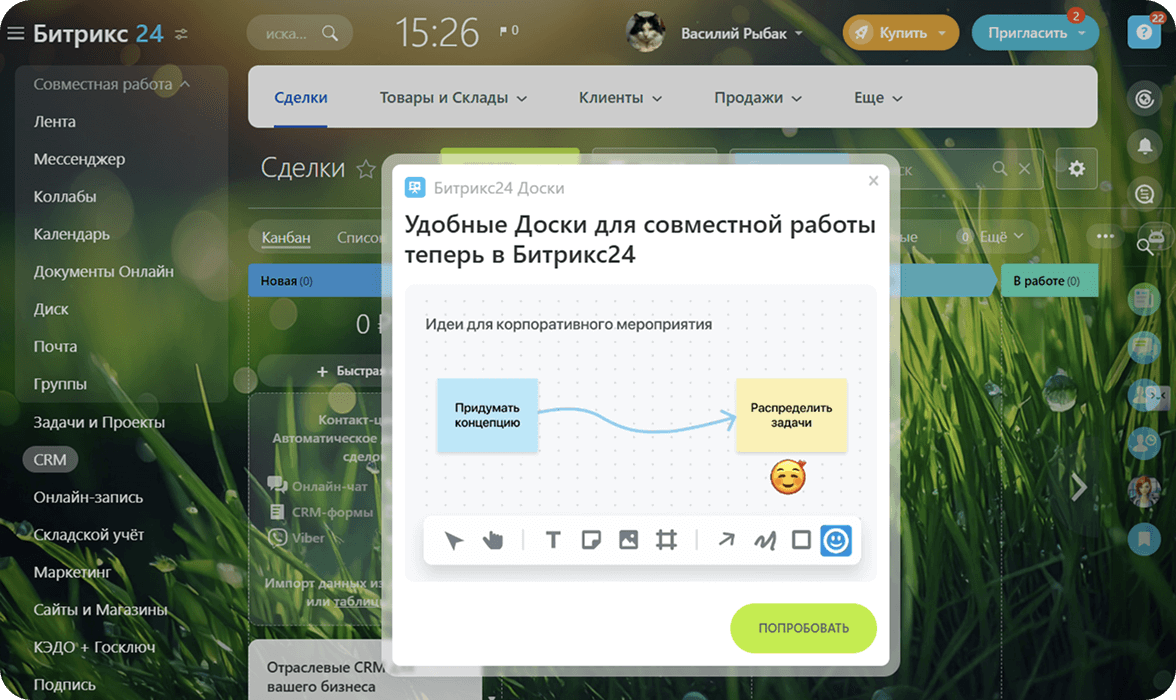 Битрикс24 Доски — виртуальное пространство для визуализации идей и совместной работы над проектами.