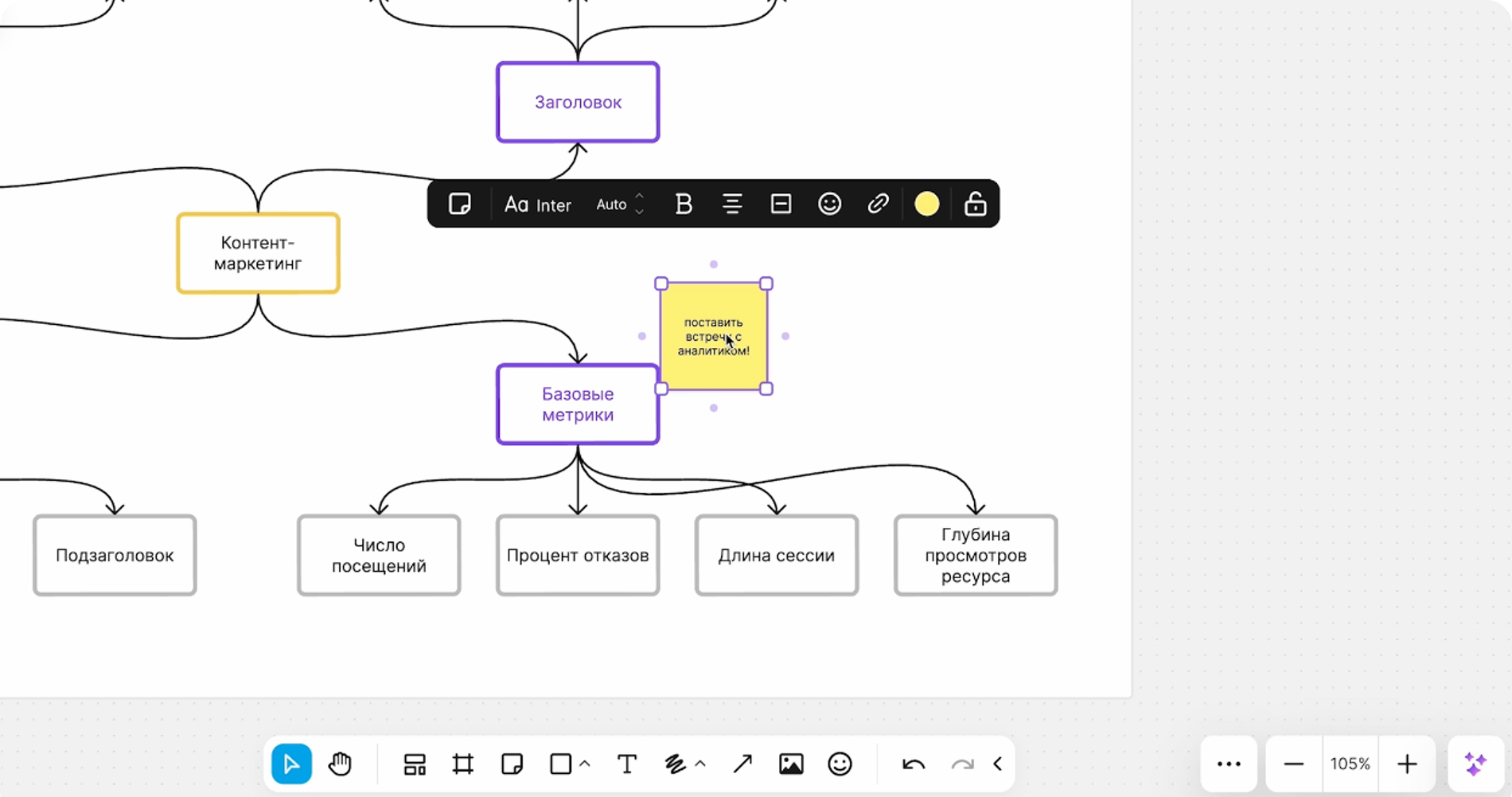 Конечно. Здесь можно вместе визуализировать идеи и стратегии, строить схемы и планы, обсуждать задачи и вносить изменения в режиме реального времени.