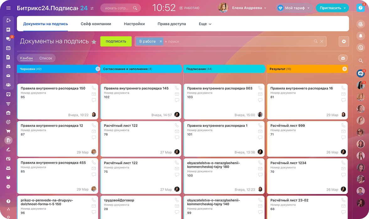 - Статусы подписания видны в реальном времени и сразу понятно, кто еще не подписал