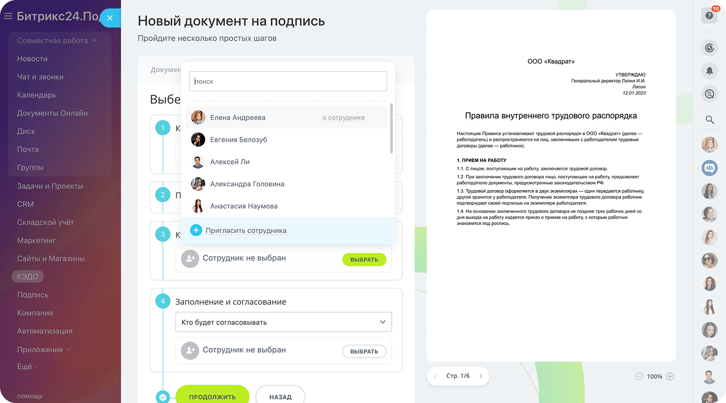 - Битрикс24 сам напомнит сотруднику, если он забыл подписать документ