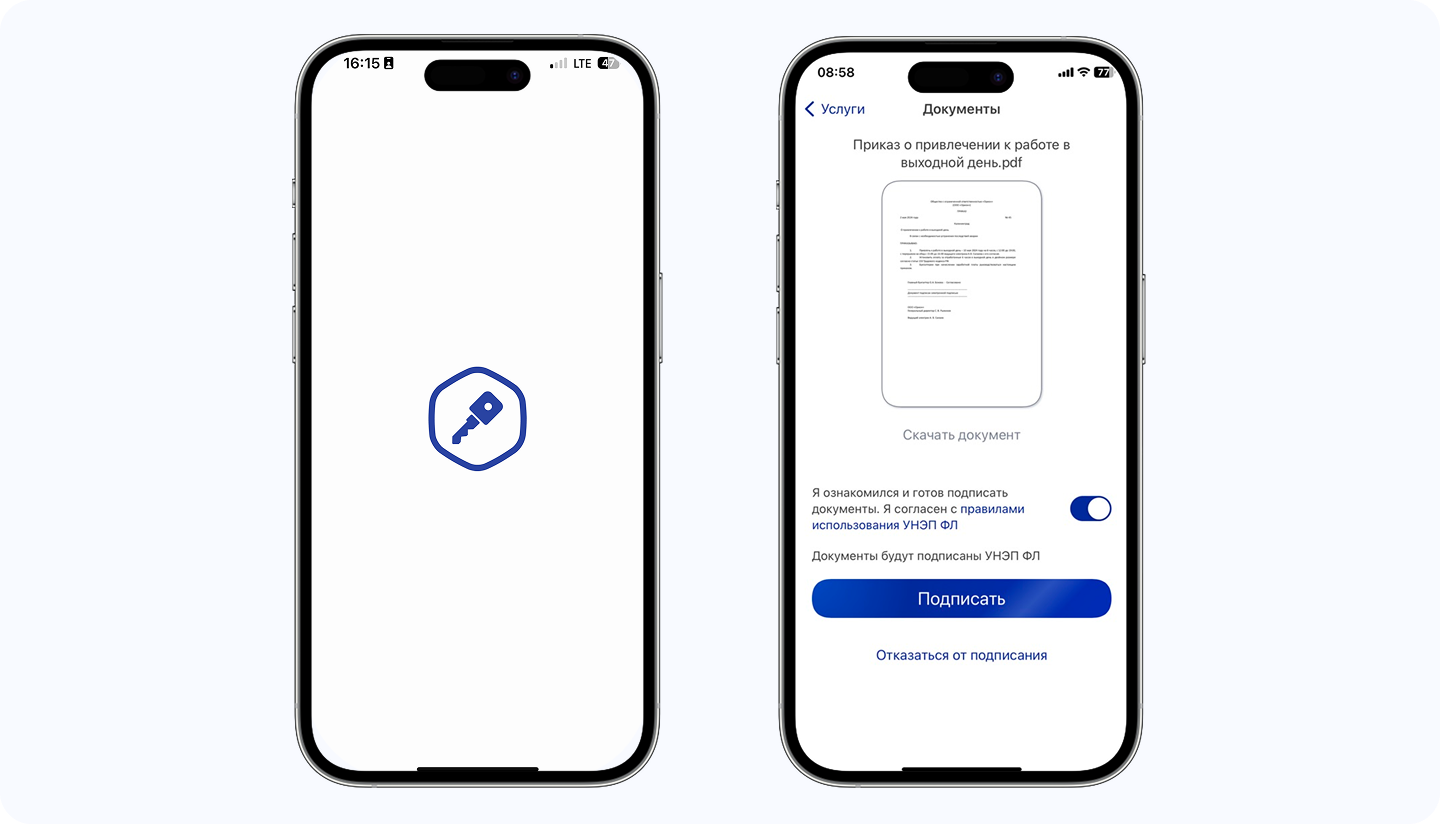 - Подпись ставится через приложение без СМС и USB‑токенов. Это безопасно и удобно