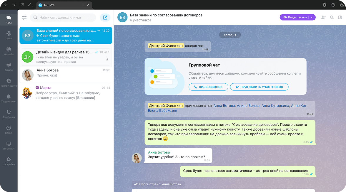 Создайте Базу знаний с правилами, алгоритмами и другой важной информацией внутри рабочей группы. Все участники проекта по умолчанию получат к ней доступ, смогут коллективно создавать, обсуждать и редактировать статьи.