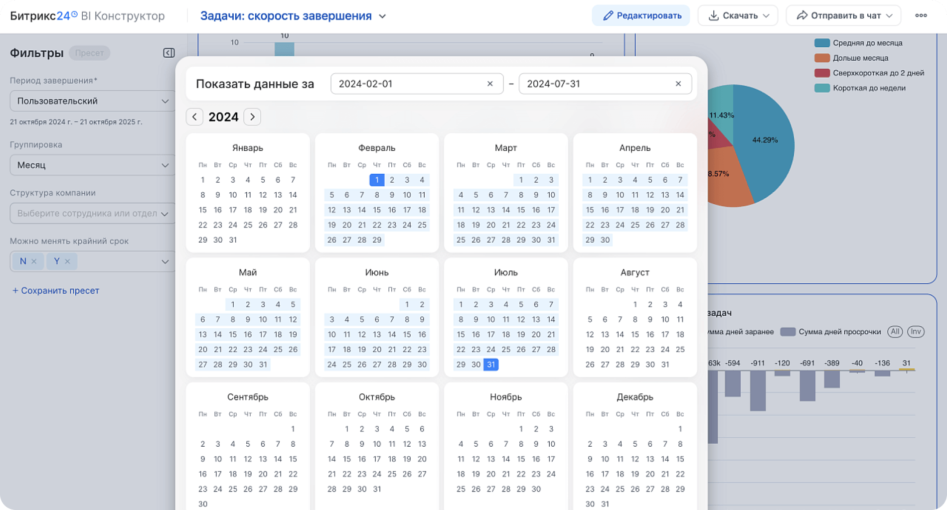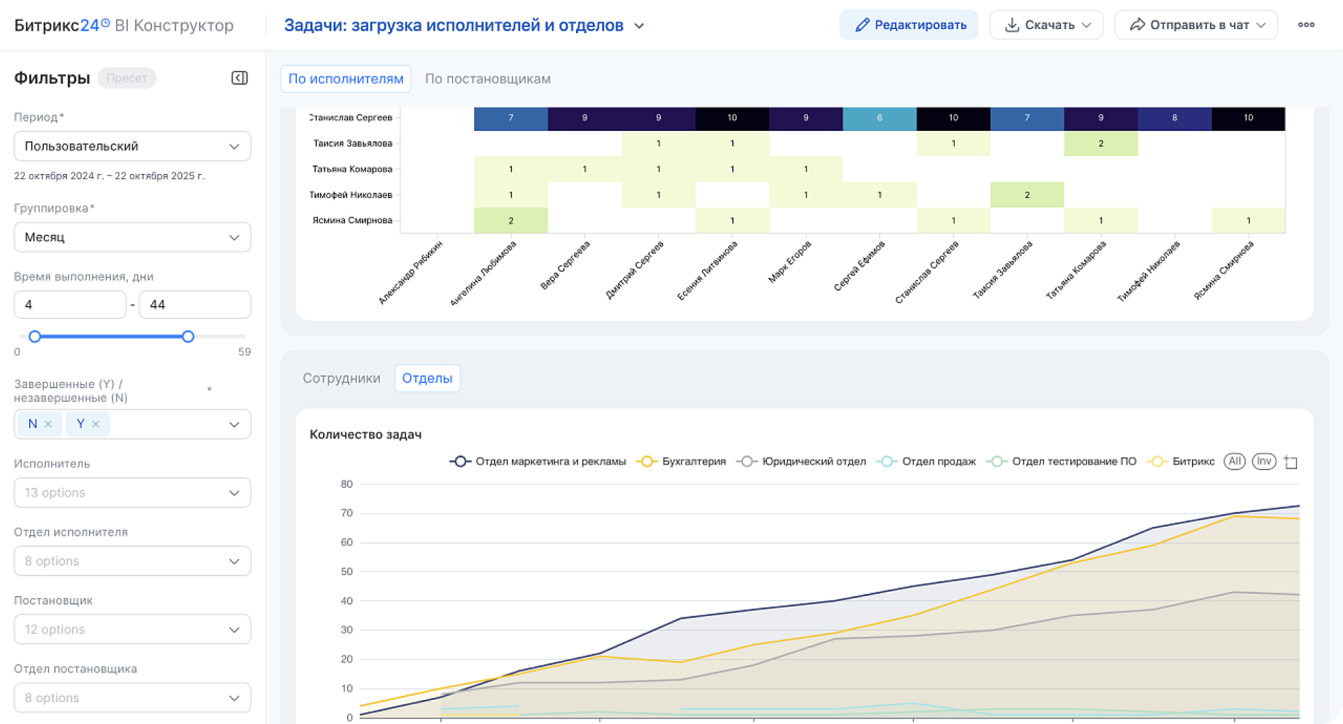 Да, BI конструктор Битрикс24 позволяет редактировать стандартные отчеты или создавать новые с нуля, использовать SQL-запросы для объединения данных из разных таблиц, применять готовые шаблоны из Битрикс24 Маркетплейса или заказывать индивидуальные отчеты у партнеров, настраивать визуализацию (графики, диаграммы, дашборды) под специфику бизнеса.