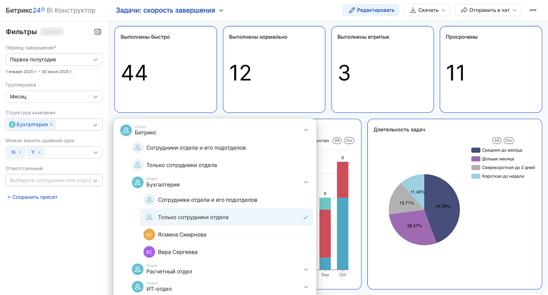 Структурируйте данные, которые собираются в Битрикс24, и создавайте отчёты любой сложности. Без штатного аналитика и подключения внешних сервисов.