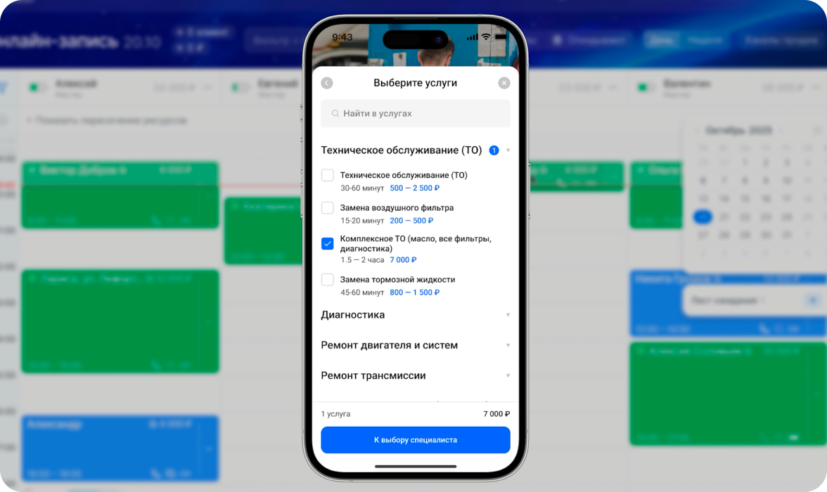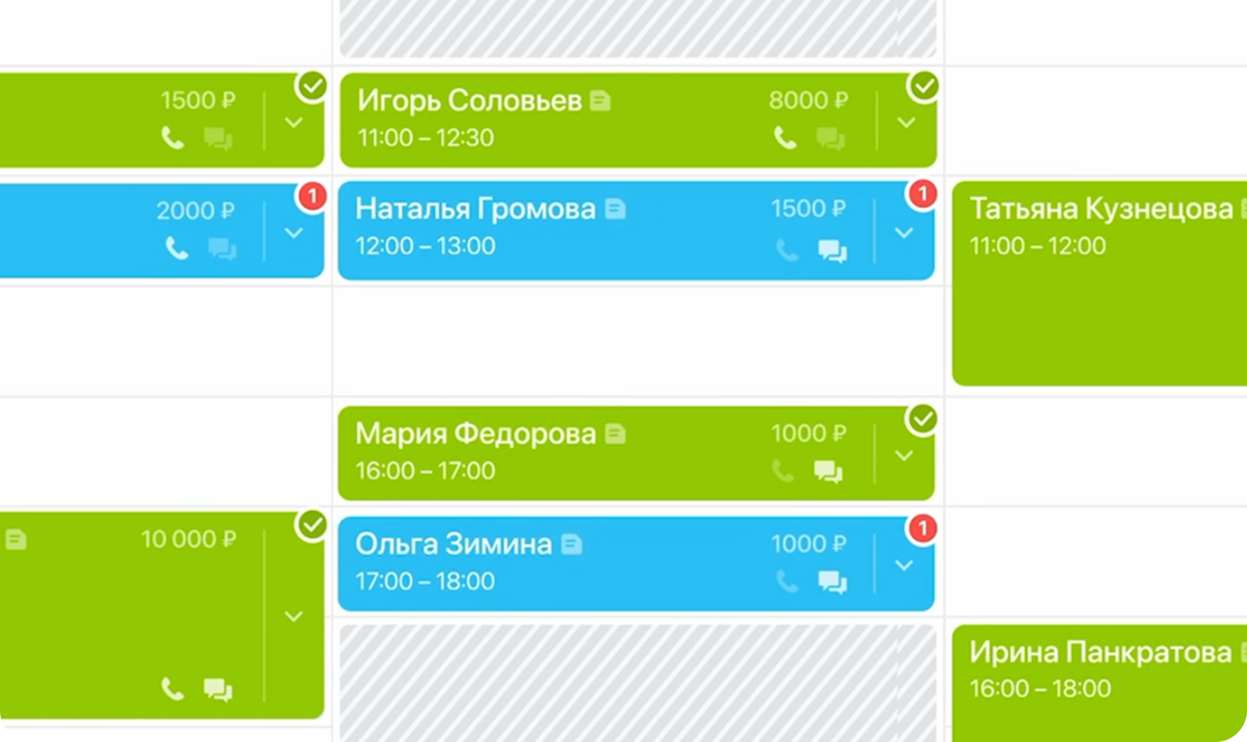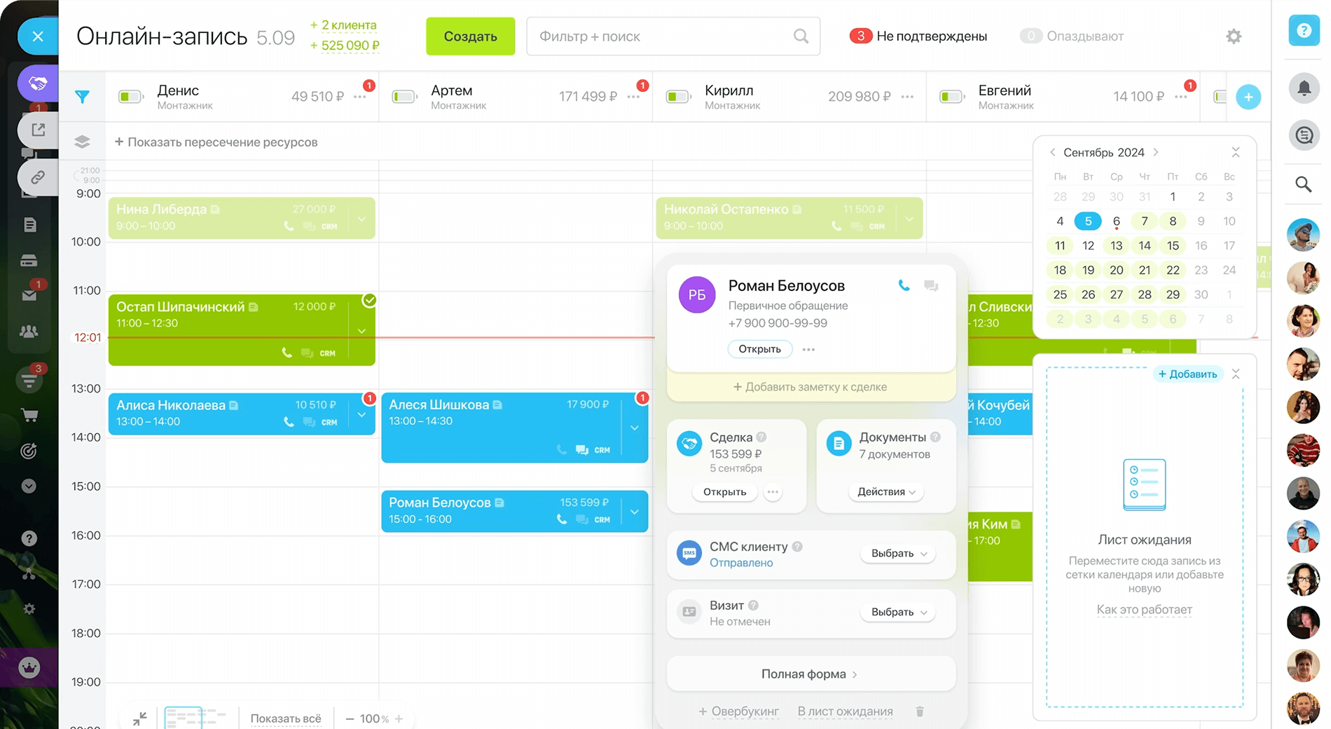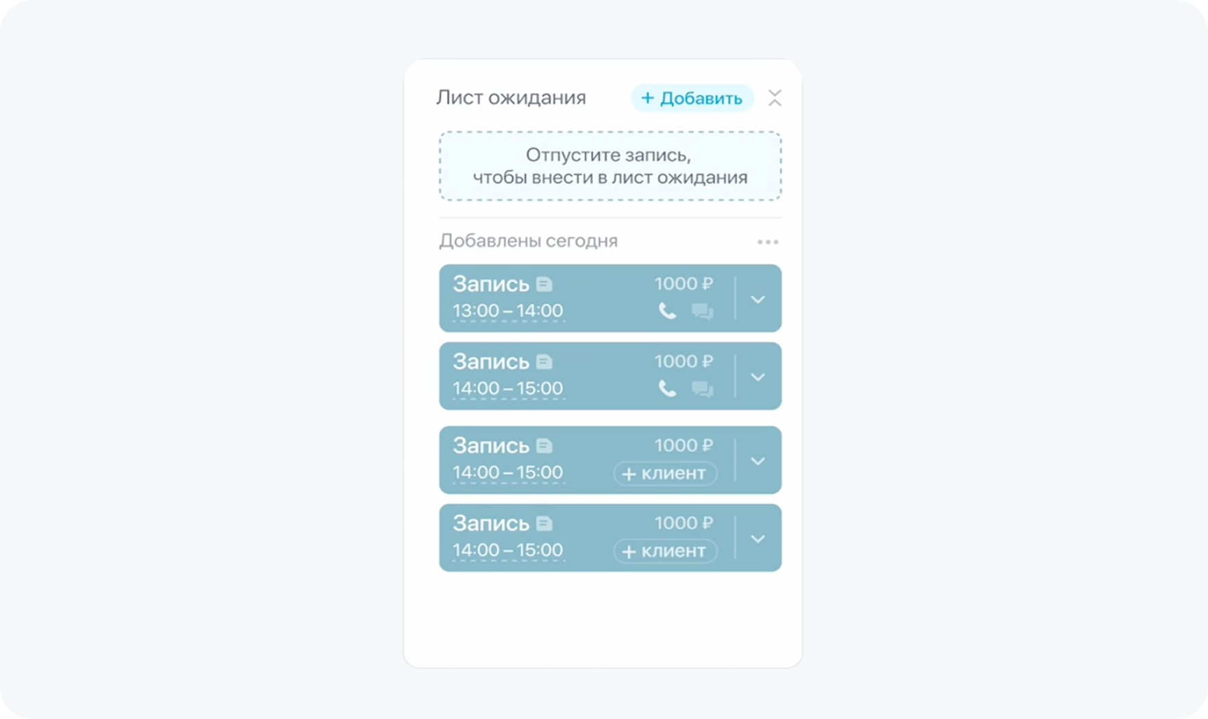 Если у специалиста появился свободный слот, можно просто выбрать следующего по списку клиента, можно тут же связаться с ним и записать на освободившееся время.