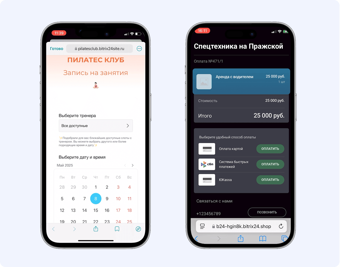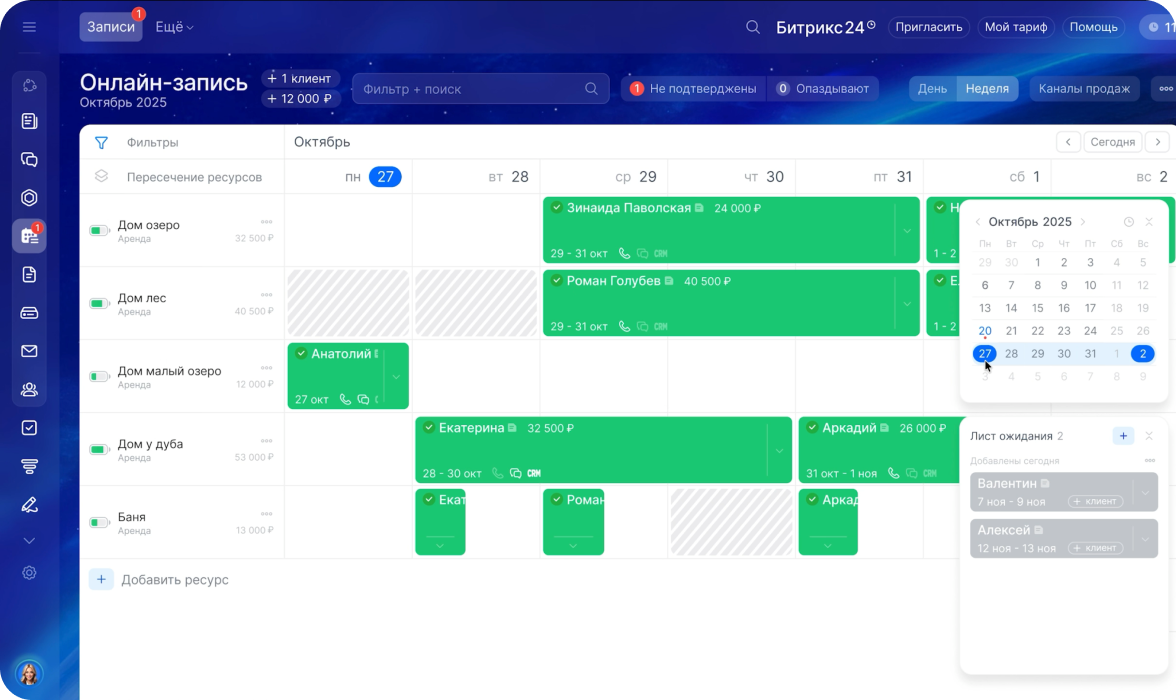 Клиентам удобно бронировать и оплачивать услуги, не переключаясь между ресурсами. А все данные о бронировании автоматически сохраняются в CRM.