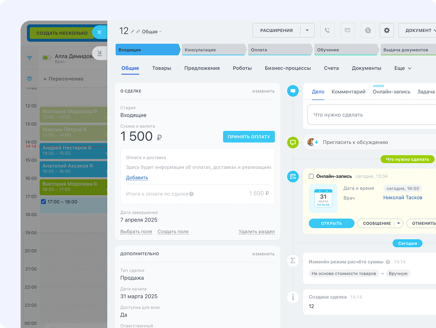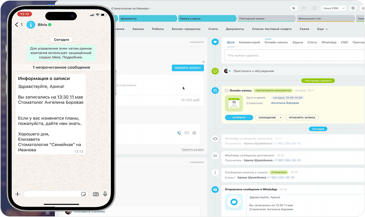 Все данные и факт оплаты автоматически сохраняются в CRM — без лишних действий и с полной прозрачностью.