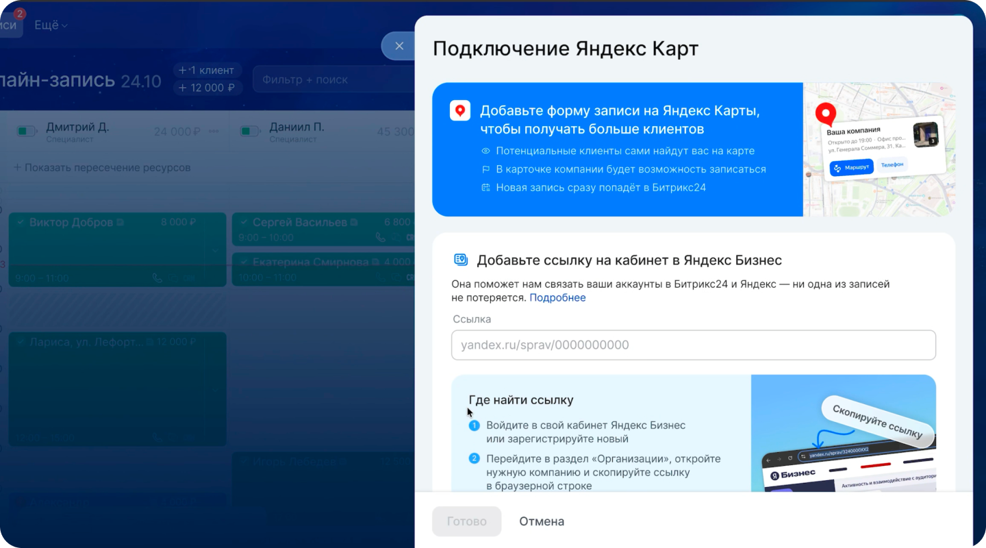 Подключите популярный канал продаж и получайте лиды прямо с Яндекс Карт.