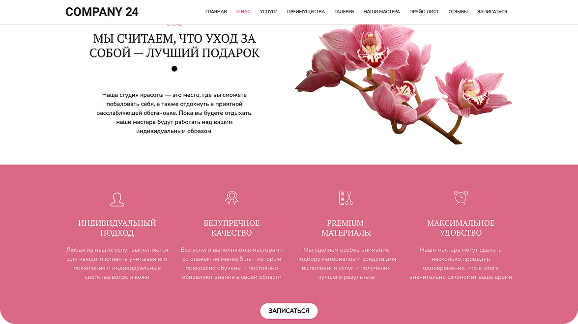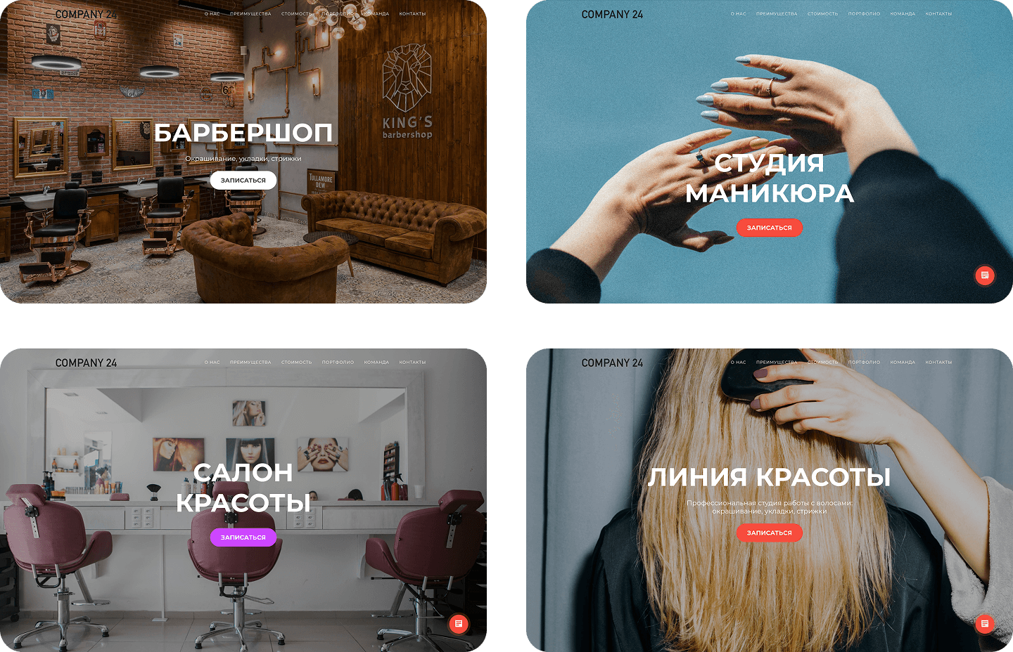 - Готовые шаблоны сайтов сферы красоты и различные блоки, адаптированные под разные нужды