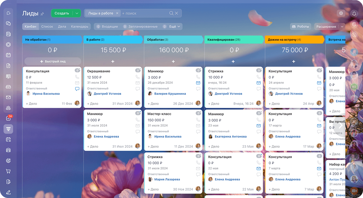 Битрикс24 самостоятельно распределит заявки между мастерами, отправит клиентам напоминания о записи, запишет разговоры, сформирует документы и сделает многое другое.