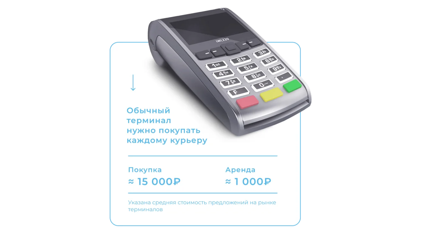 Курьерам не нужно возвращаться в офис для снятия кассового отчета, как с обычными банковскими терминалами.
