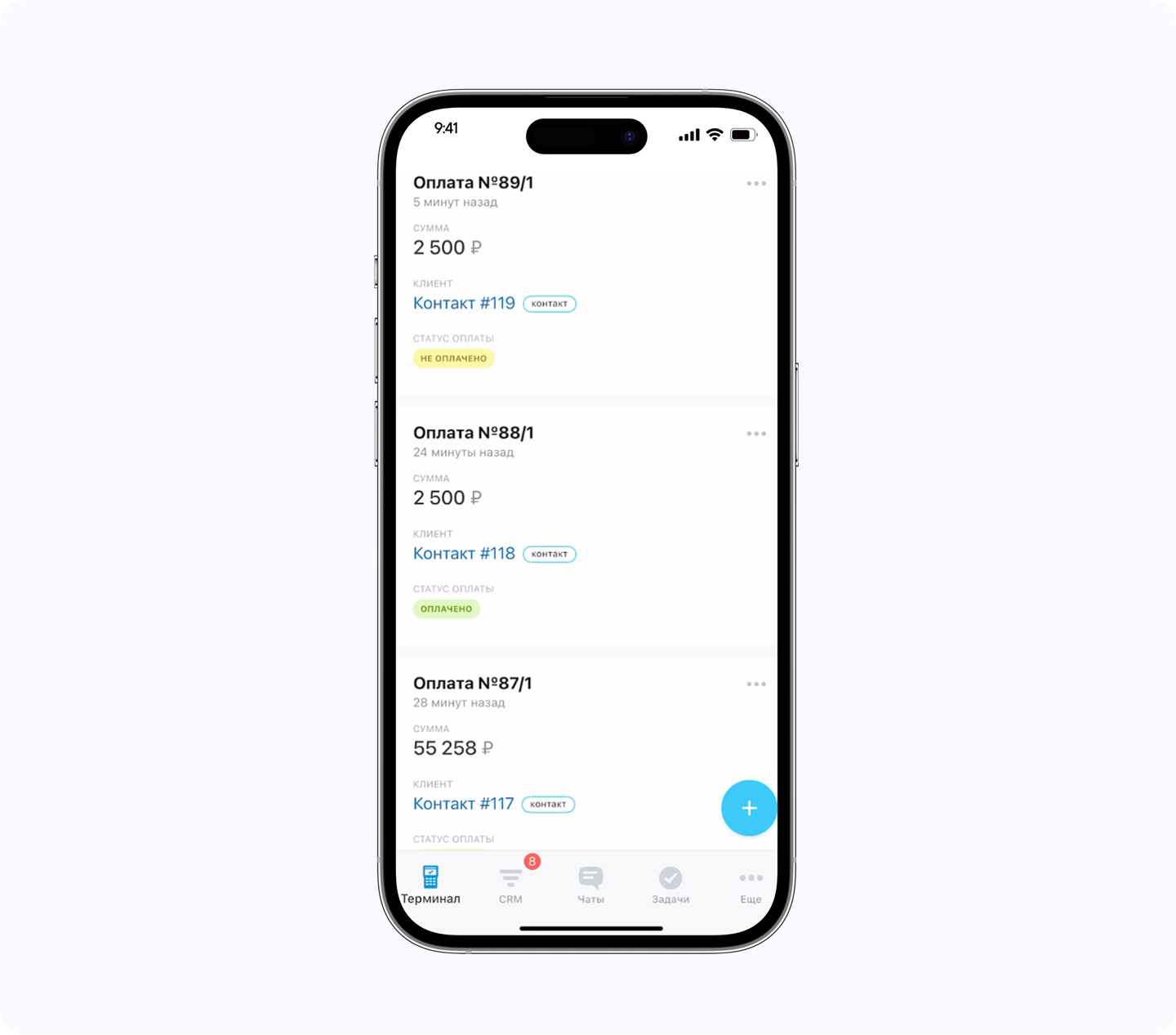 При совершении платежа номера телефонов ваших оффлайн-клиентов автоматически попадают в CRM. Это значит, что вы можете собирать контакты и продавать своим клиентам повторно.