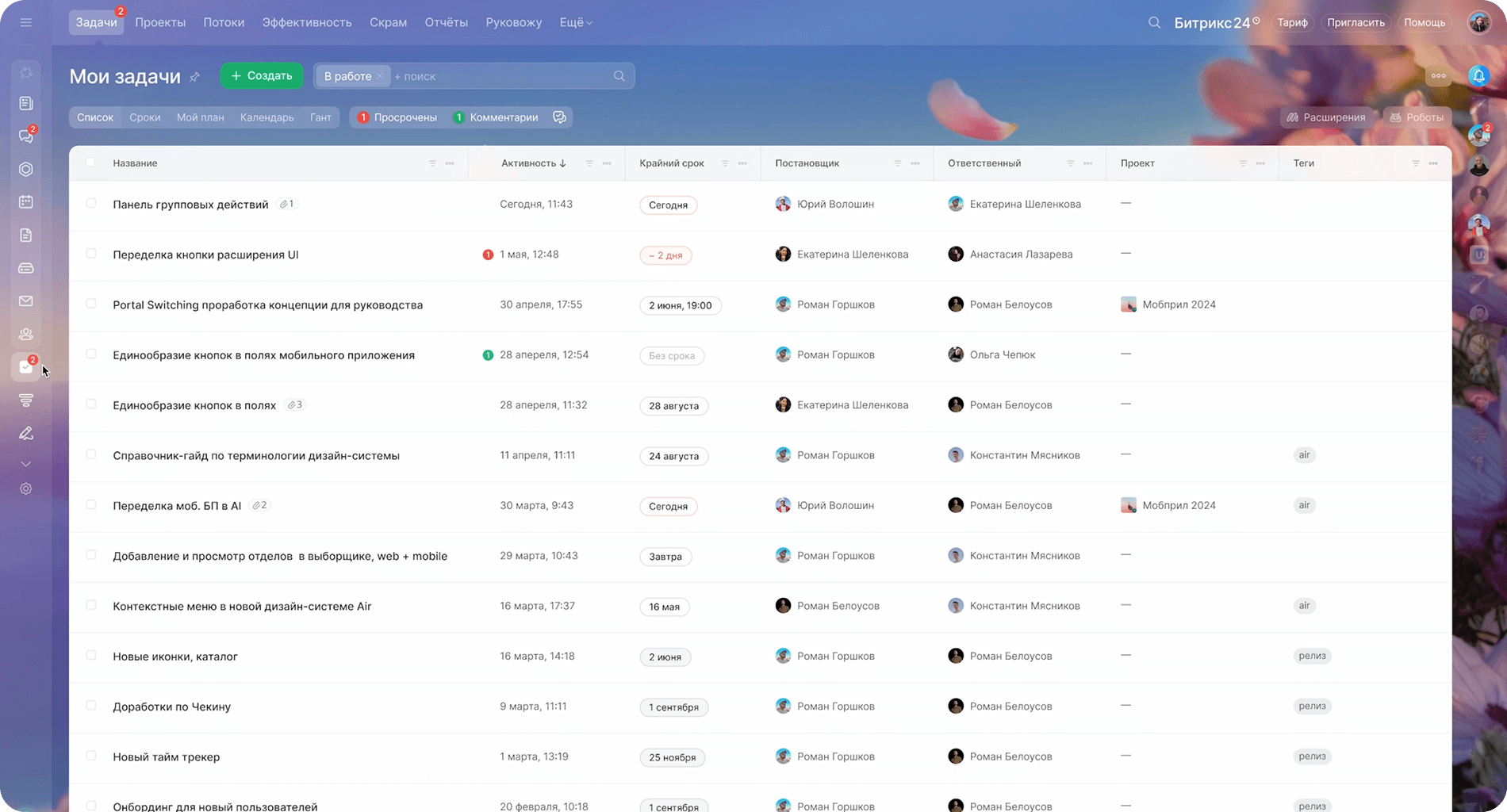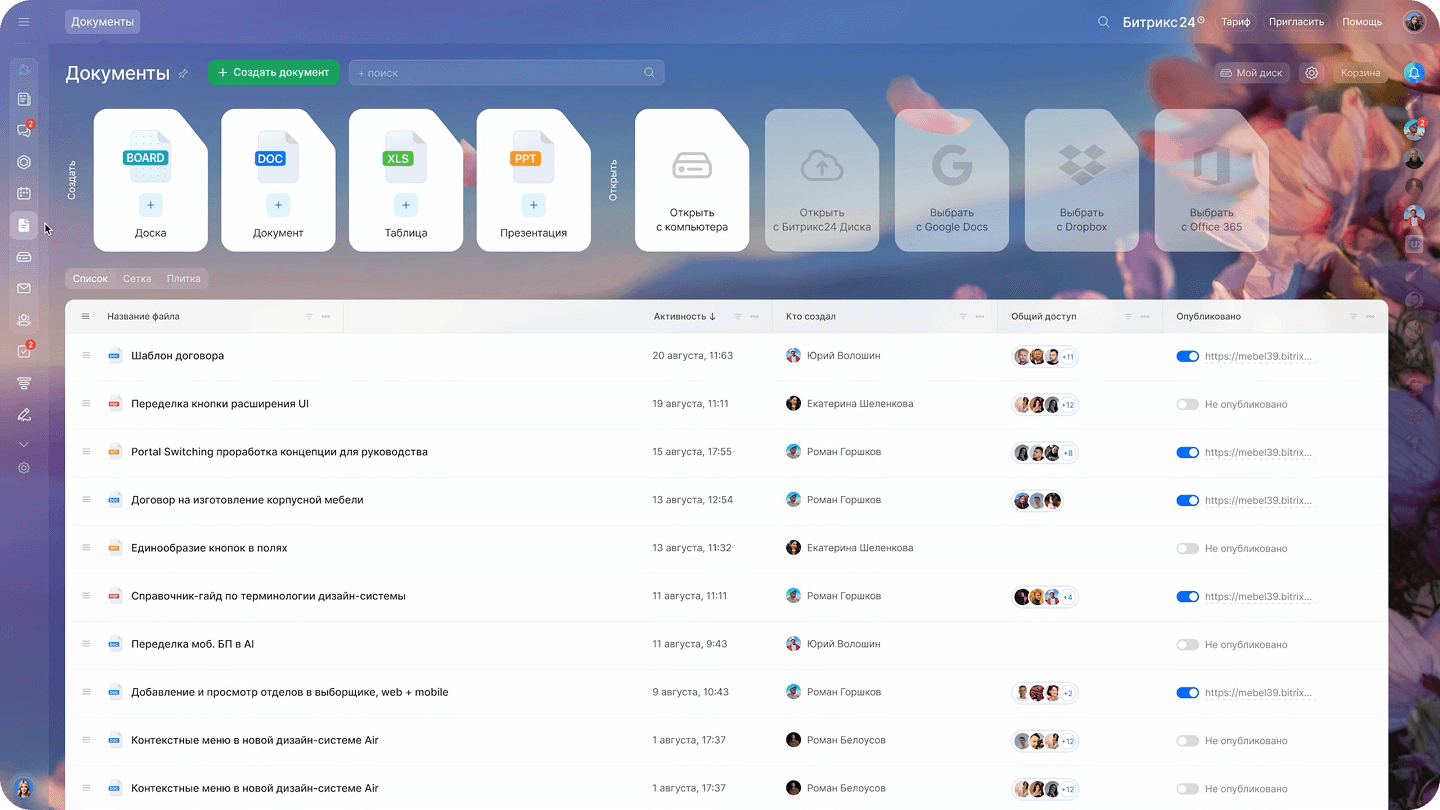 Вы всегда будете в курсе всех важных событий. Гибкая настройка уведомлений и их отправка в приложении гарантируют, что вы не пропустите ничего значимого, будь то изменения в задачах, новые файлы, сообщения, сделки и многое другое.