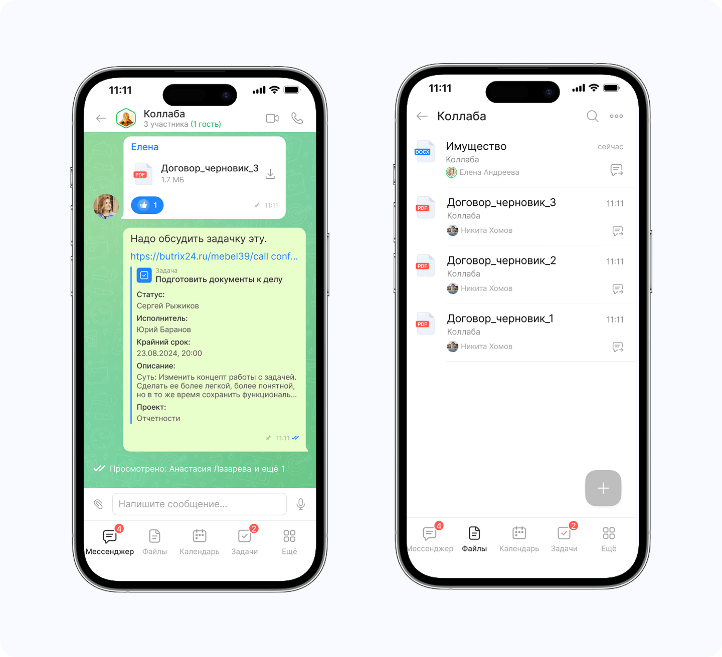 - Доступ к задачам, файлам и календарю проекта прямо из коллабы – всё важное всегда под рукой