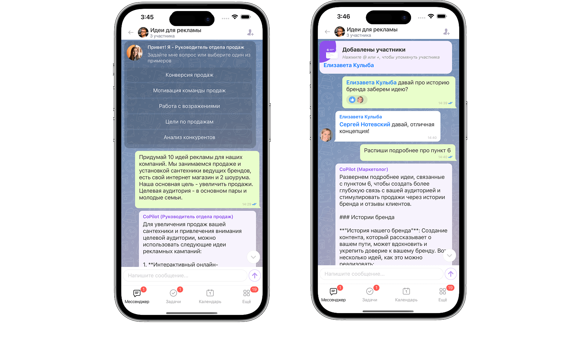Битрикс24 CoPilot – ваш AI-помощник в ежедневной работе: пишет любые тексты, предлагает и обсуждает идеи, ведет резюме встреч, помогает выделять главное из документов, продумывать и ставить задачи.