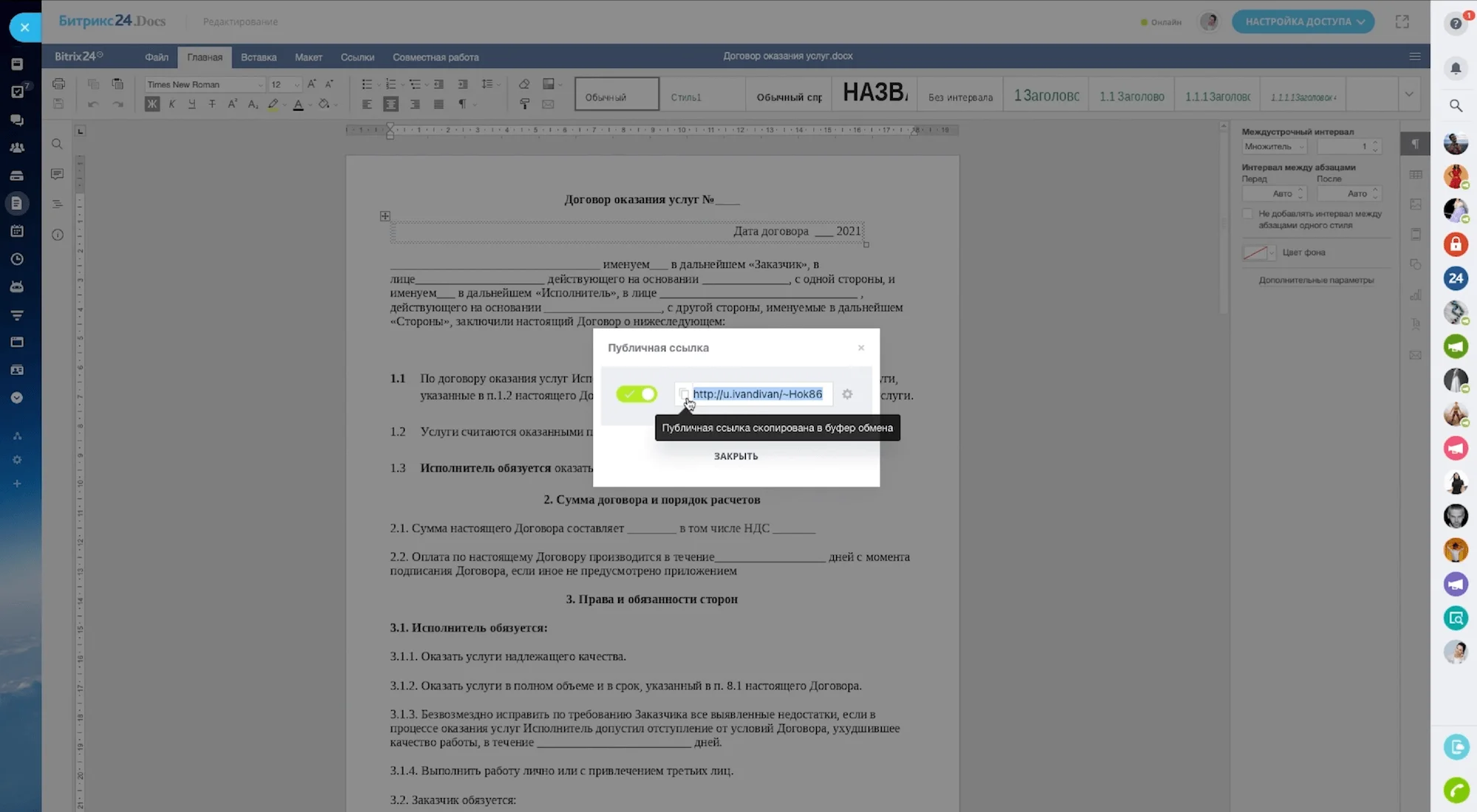 Делитесь ссылками на документы с клиентами или подрядчиками. Вы можете отправить ссылку на просмотр файла даже тем, у кого нет Битрикс24, используя публичную ссылку на документ.