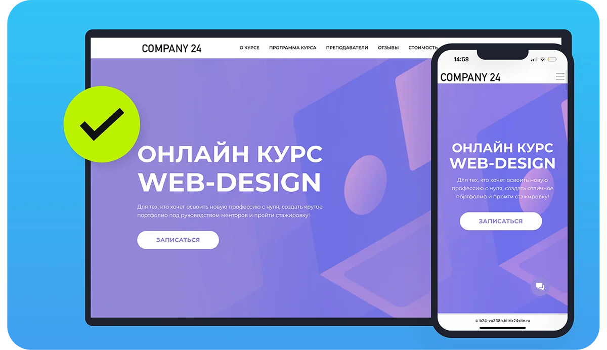 Сайт репетитора, созданный в конструкторе Битрикс24, технически оптимизирован: он адаптирован под все устройства, имеет быстрый отклик и корректную структуру. Вы сможете самостоятельно настроить мета-теги, карту сайта и файл robots.txt — всё это доступно прямо в редакторе.