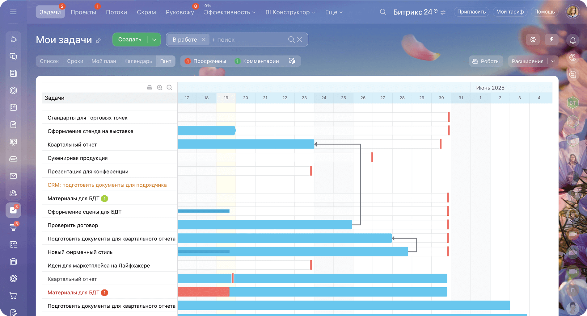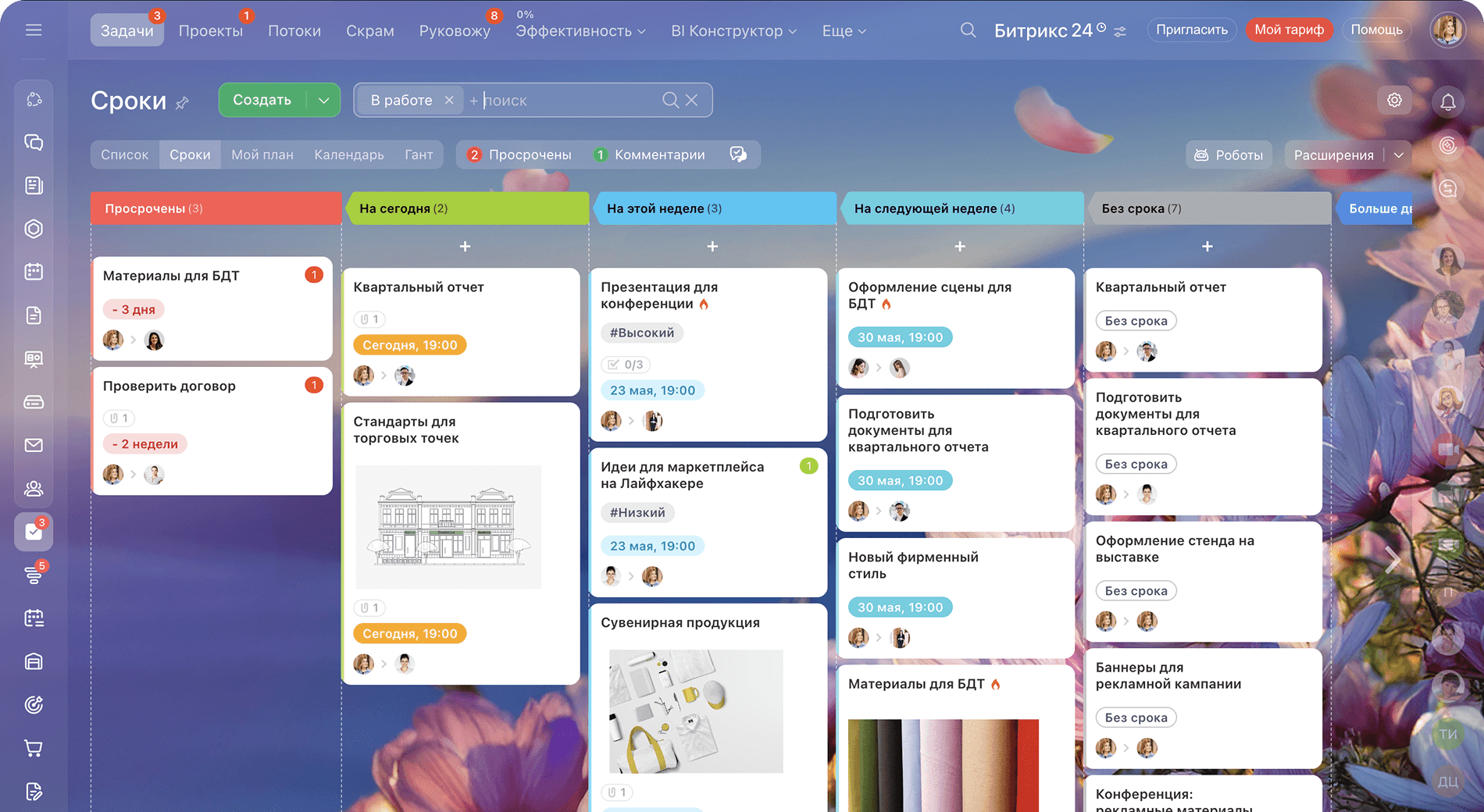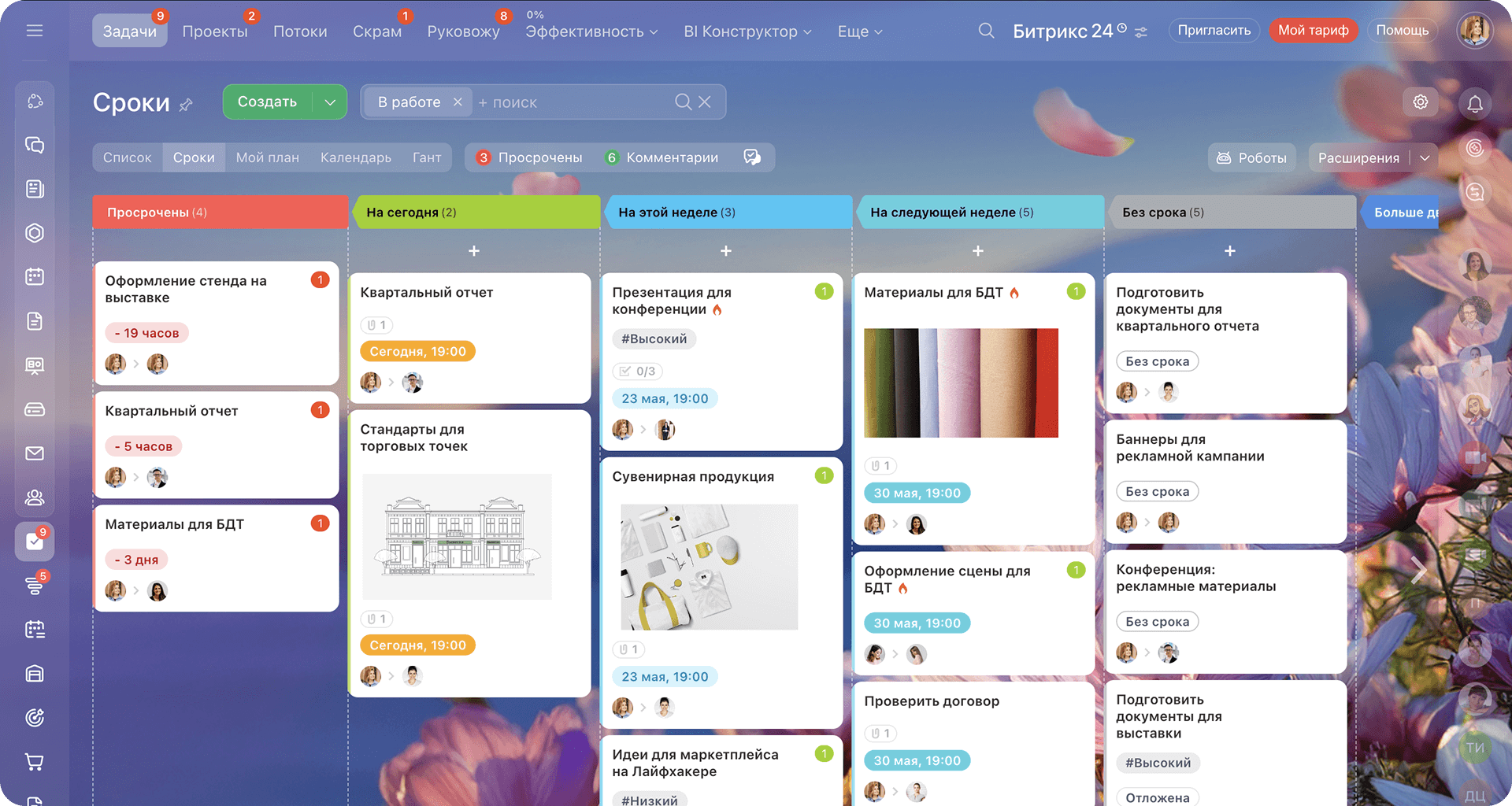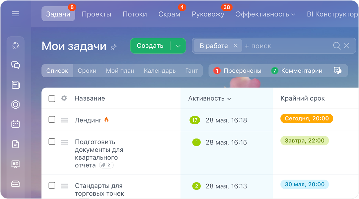 Автоматические напоминания, отчёты, контроль сроков и визуальные инструменты помогают экономить время и улучшать результаты команды.
