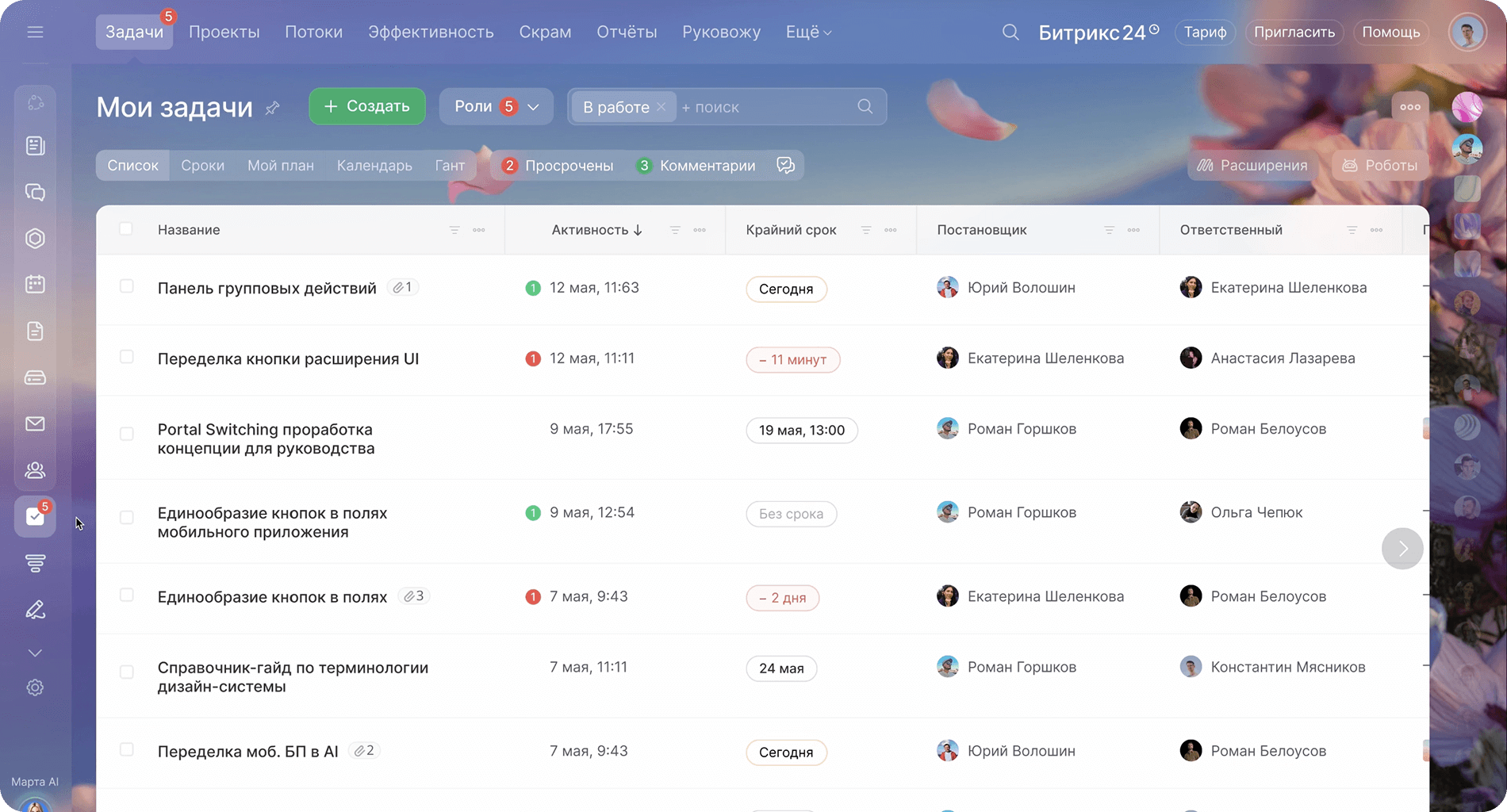 - Поднимает в верх списка задачи и проекты, в которых нужно ваше участие прямо сейчас