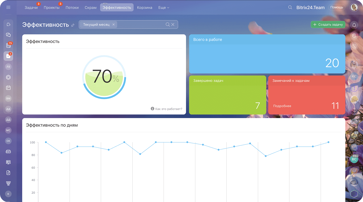 Переход проходит мягко: Битрикс24 можно настроить под привычный формат работы. Система предлагает шаблоны задач и короткие туры по интерфейсу, чтобы быстрее разобраться. Начните с небольшой команды, покажите результат — остальные быстро включатся.