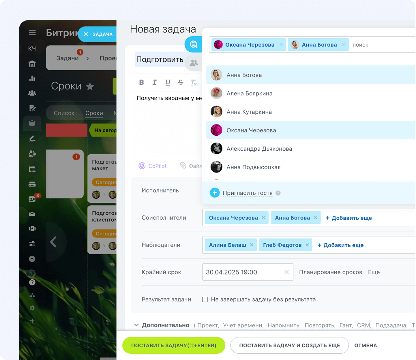 Битрикс24 поставит задачу за вас в нужное время.