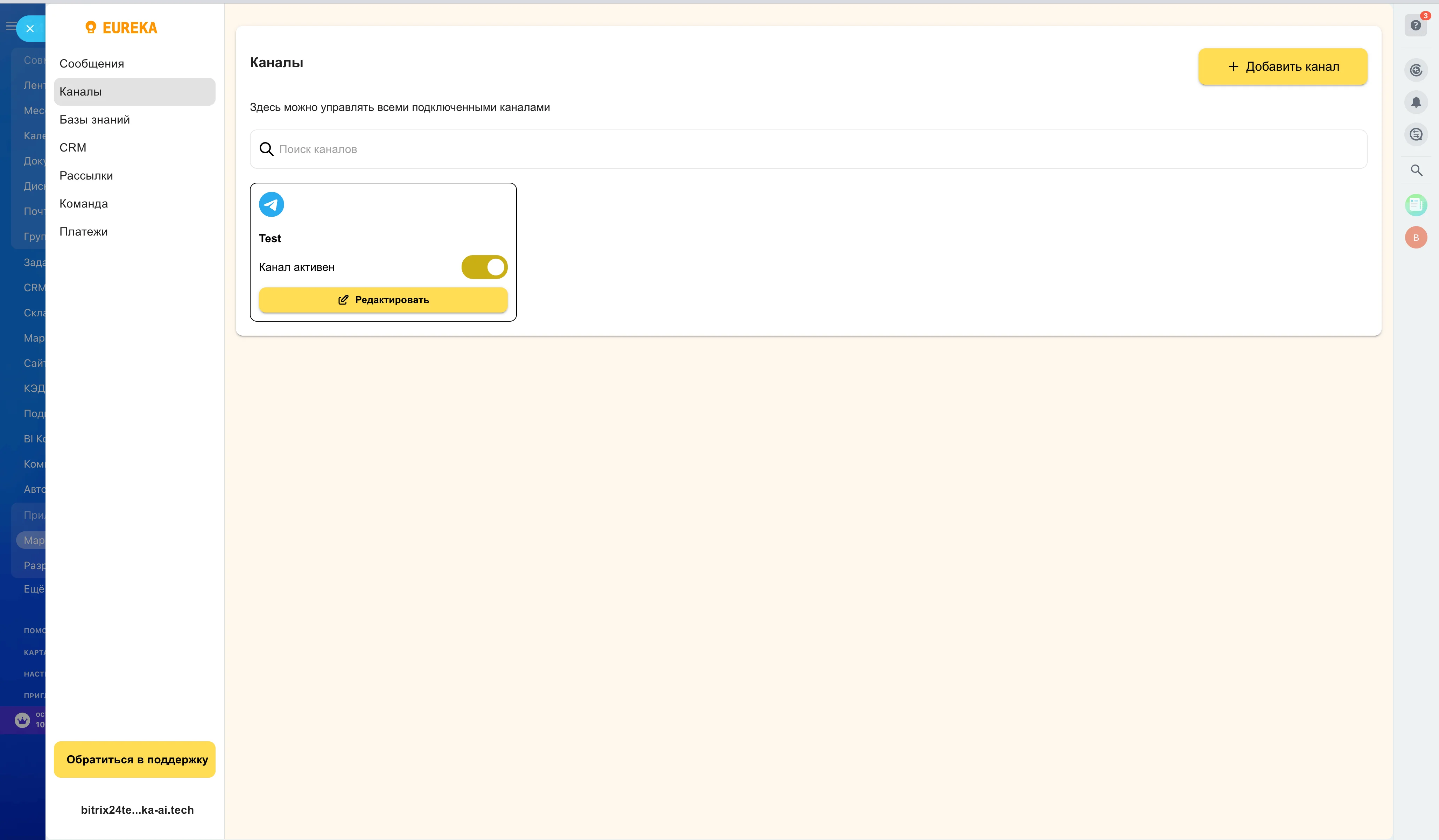 В Битрикс24 такая возможность есть. Чтобы подключить ИИ-консультанта к CRM, мы разработали специальное приложение и разместили его на Маркетплейсе. Внутри Битрикс24 появился специальный модуль, через который можно настраивать чат-бота для разных платформ.