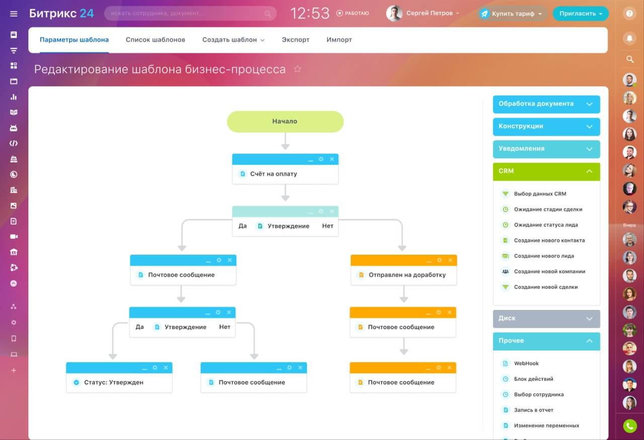 В некоторых компаниях в качестве BPMS выступает CRM-система. Так, гибкая CRM Битрикс24 содержит множество функций и позволяет выстраивать бизнес-процессы интернет-магазина, маркетингового агентства или службы такси. Программа автоматизирует работу компаний, в основе которых лежит коммуникация с клиентами.