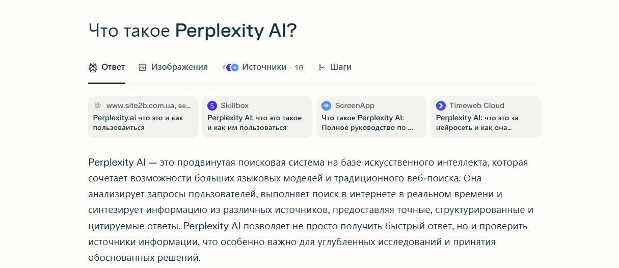Сервис можно использовать, когда нужно разобраться в новой теме, подготовить отчет или проверить данные. Perplexity AI показывает результаты поиска и источники, чтобы вы могли убедиться в точности информации и подкрепить свои материалы исследованиями.