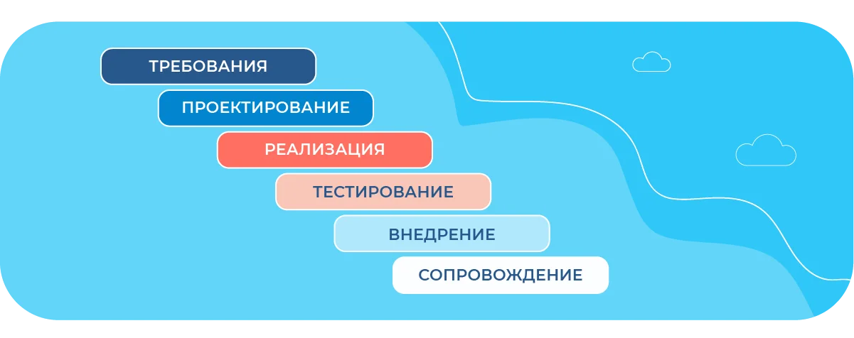 Waterfall (или водопад) — каскадный подход к разработке программного обеспечения и управлению проектами. Каждый новый этап работы начинается только после того, как команда полностью завершила предыдущий.