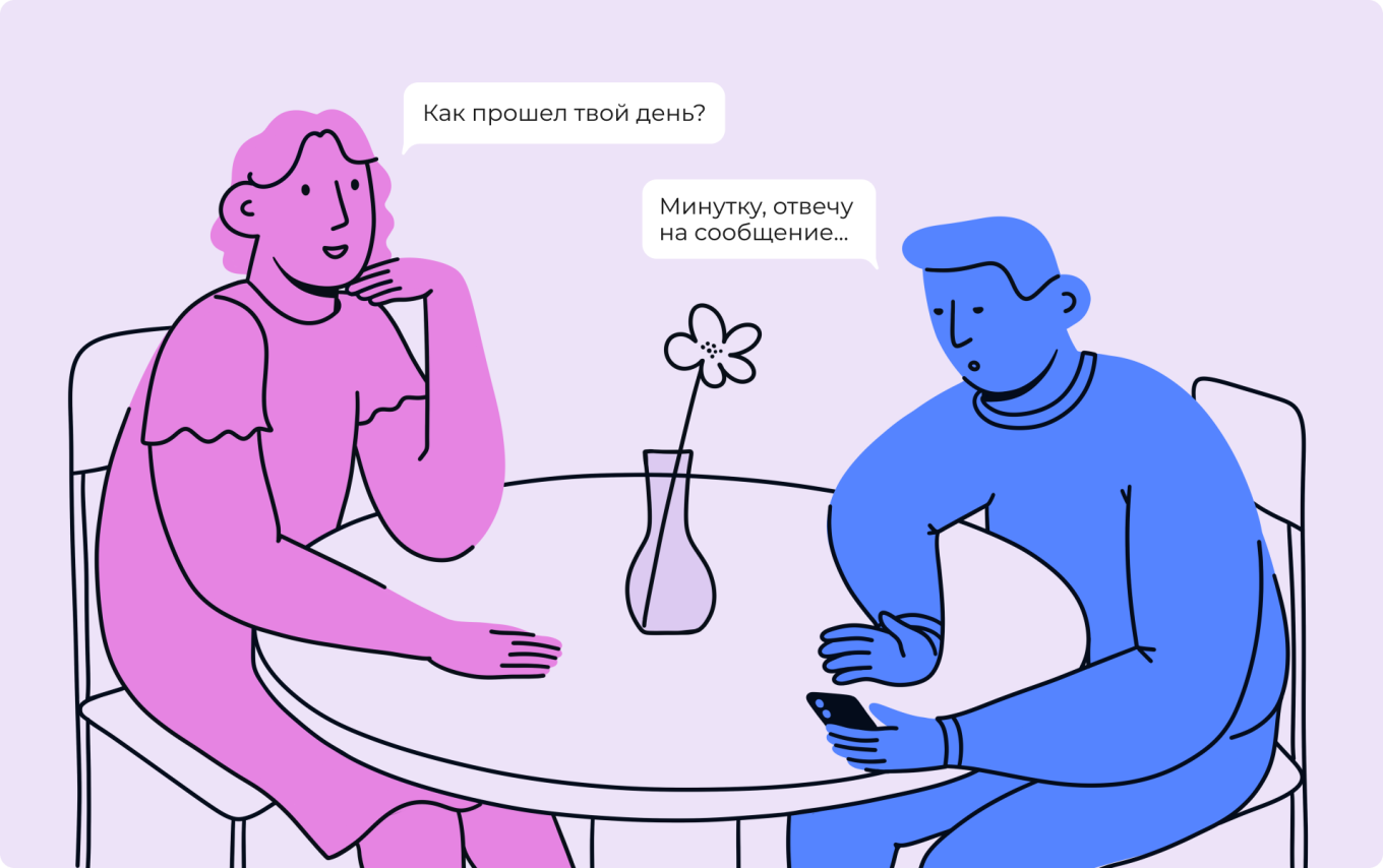 У человека не остается ни времени, ни сил на личную жизнь. Он становится раздражительным и эмоционально отстраненным. Даже во время встреч с друзьями, на свиданиях или семейном ужине продолжает решать рабочие задачи.