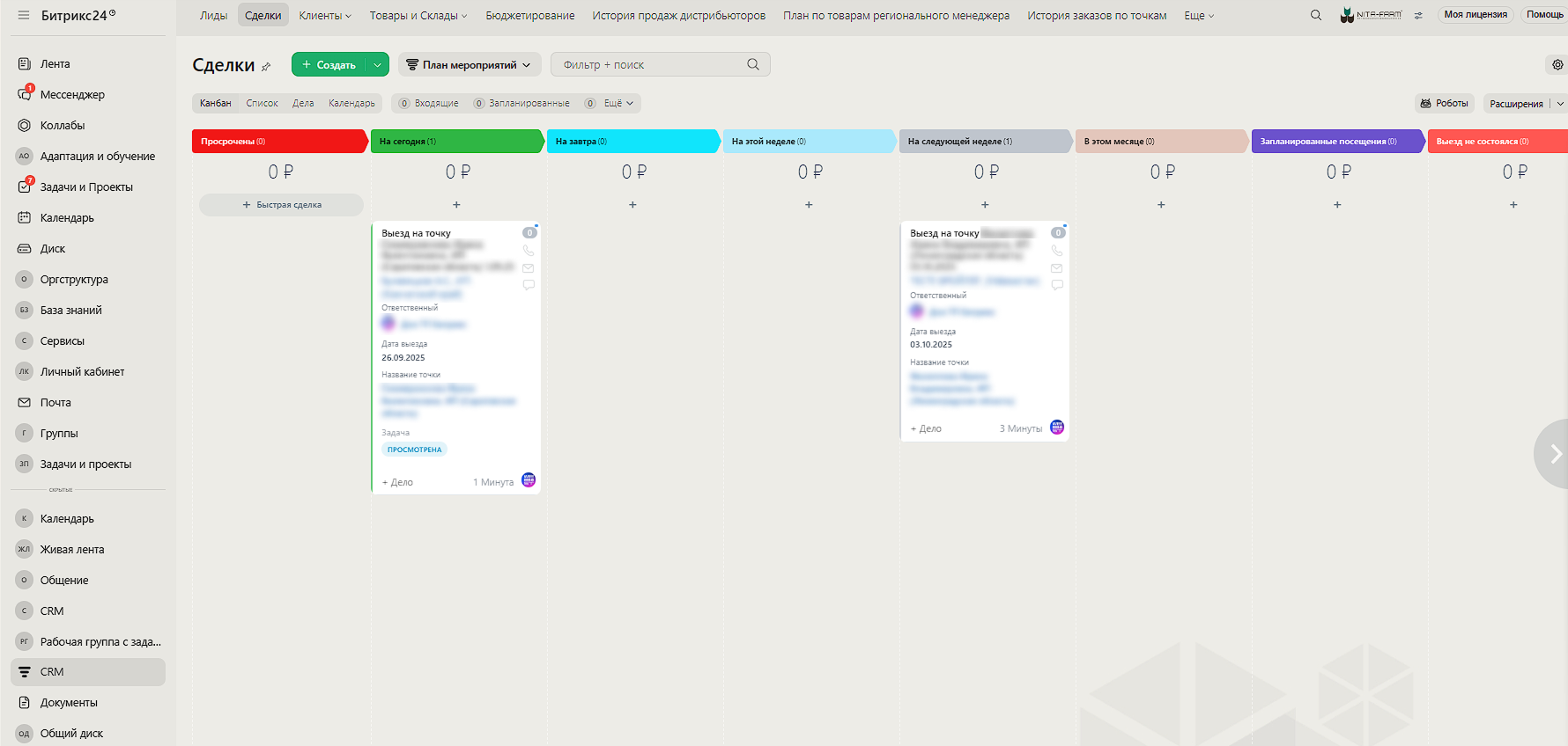 Для отдела продаж реализовали отдельную воронку и кастомизировали карточки компаний. Важной было учесть, что у одной компании может быть множество торговых точек (аптеки, ветклиники и др.), с которыми работают разные менеджеры.