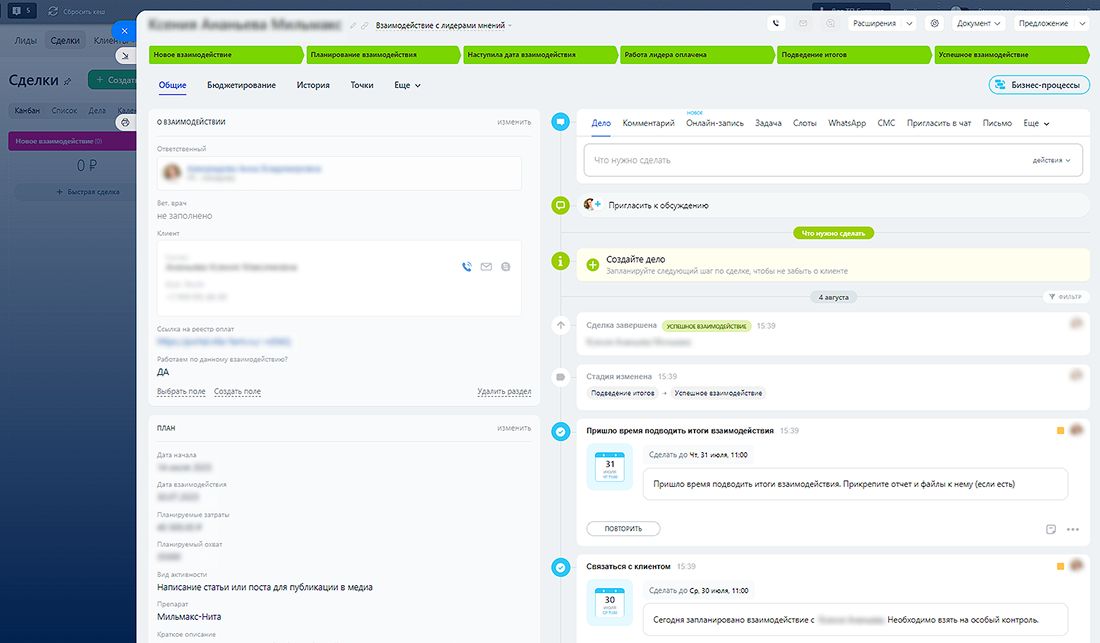 Отдельно отмечу работу с opinion-лидерами — всё работает в штатном режиме, просьб и доработок нет, мы полностью довольны. Большим результатом стала кастомизация модуля «Задачник» — мы полностью перешли с Elma на Битрикс, и сейчас у нас много планов по автоматизации и развитию интеграции с 1С. Проект с фиксацией геолокации и выстраиванием отдела продаж МДЖ находится на стадии обучения сотрудников и внедрения.