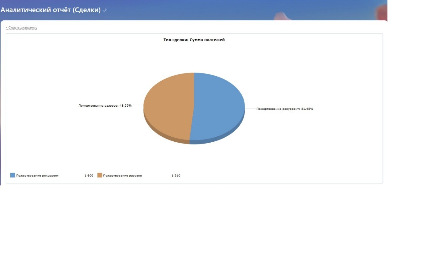 Отчет по новым подпискам — фокус на регулярные пожертвования как ключевой показатель стабильности фонда. Позволяет оценить эффективность кампаний по привлечению постоянных доноров.