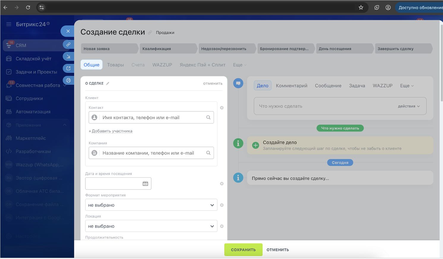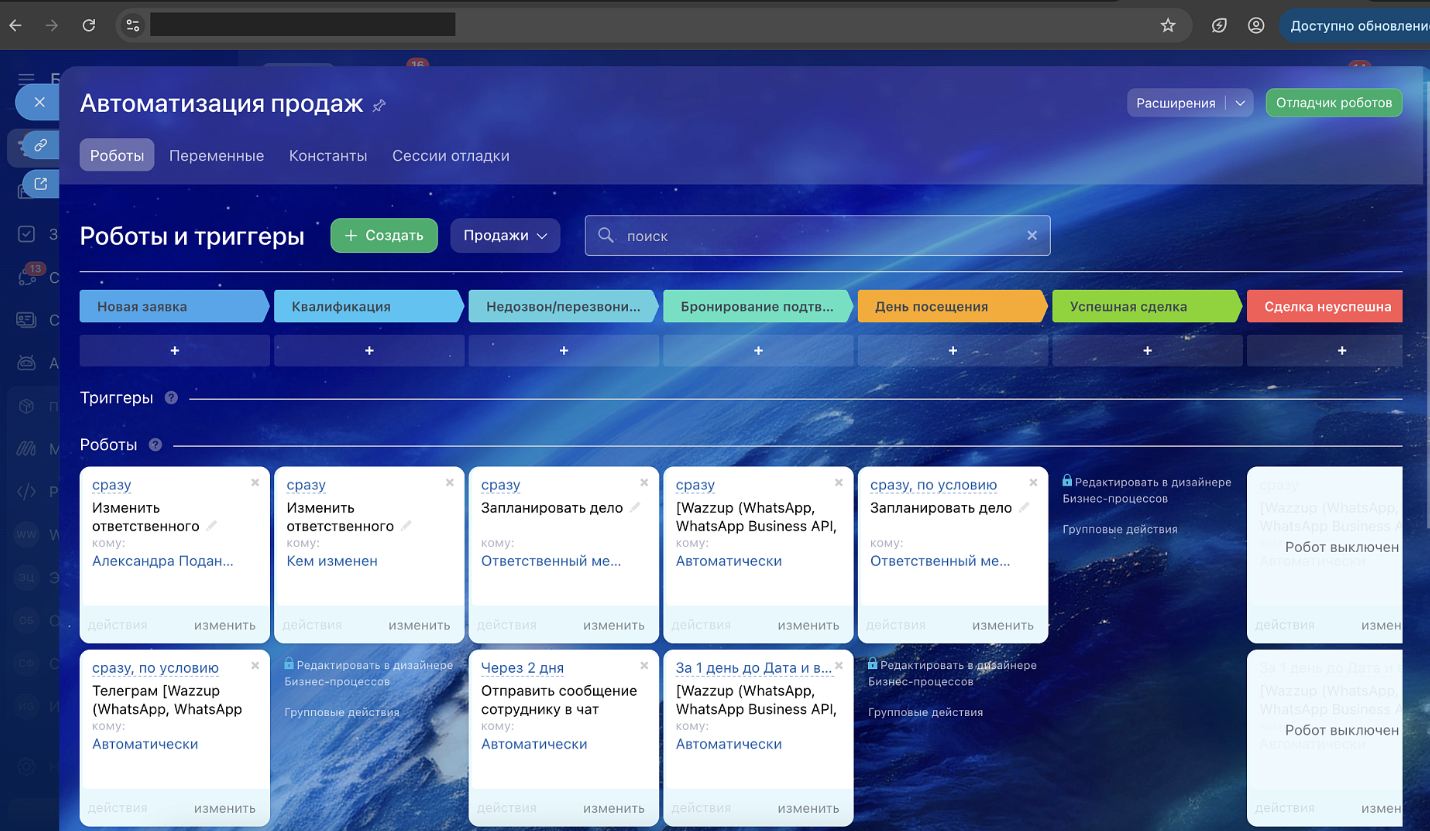 Этап 2. Настройка CRM (воронки, карточки сделок, роботы и логика обработки)
