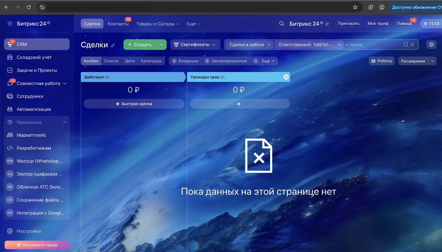 - работа с воронкой "Продажи";