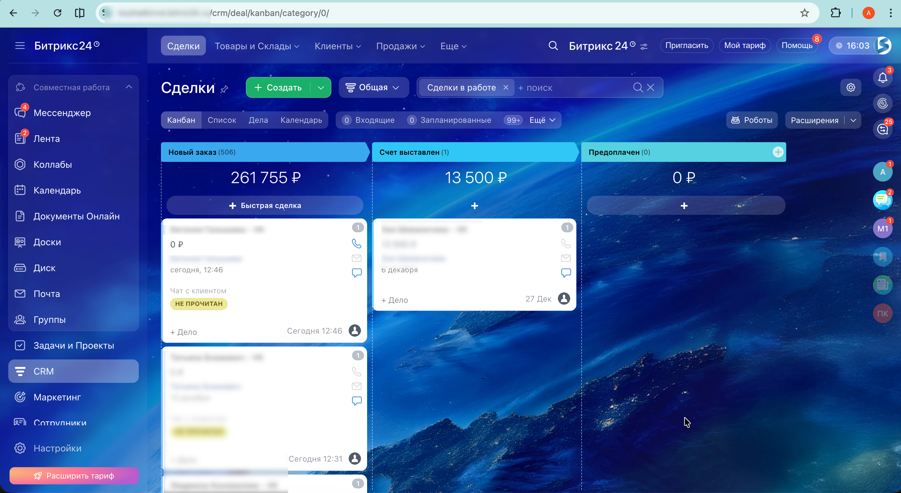 Перед проектом стояли задачи автоматизировать получение и обработку заявок из всех каналов, выстроить системную работу с клиентами в CRM, внедрить воронку продаж с понятными этапами и ответственными, а также наладить взаимодействие между сотрудниками внутри одного цифрового пространства. Отдельное внимание требовалось уделить удобству работы, так как компания небольшая, и CRM должна была стать простым и понятным инструментом ежедневной работы, а не сложной системой, требующей длительного обучения.