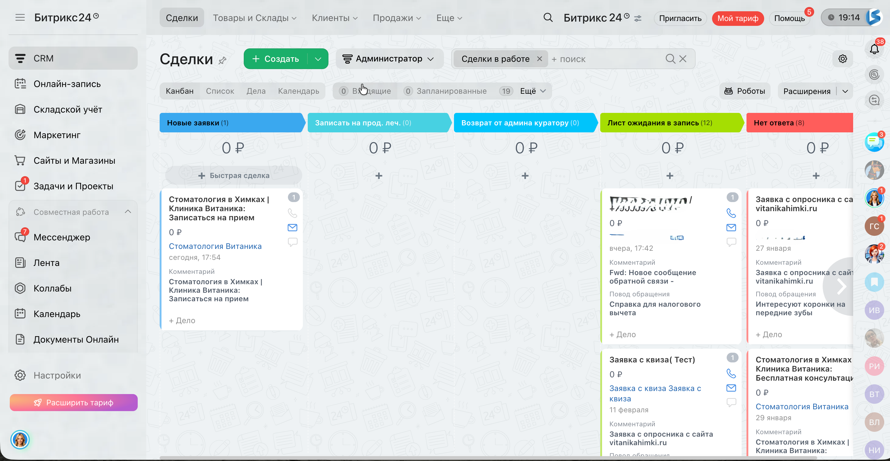 Время передачи пациента между администраторами, кураторами и врачами снизилось примерно на 60%, благодаря автоматическому переносу сделок между воронками;