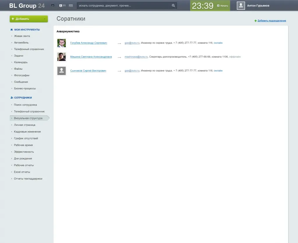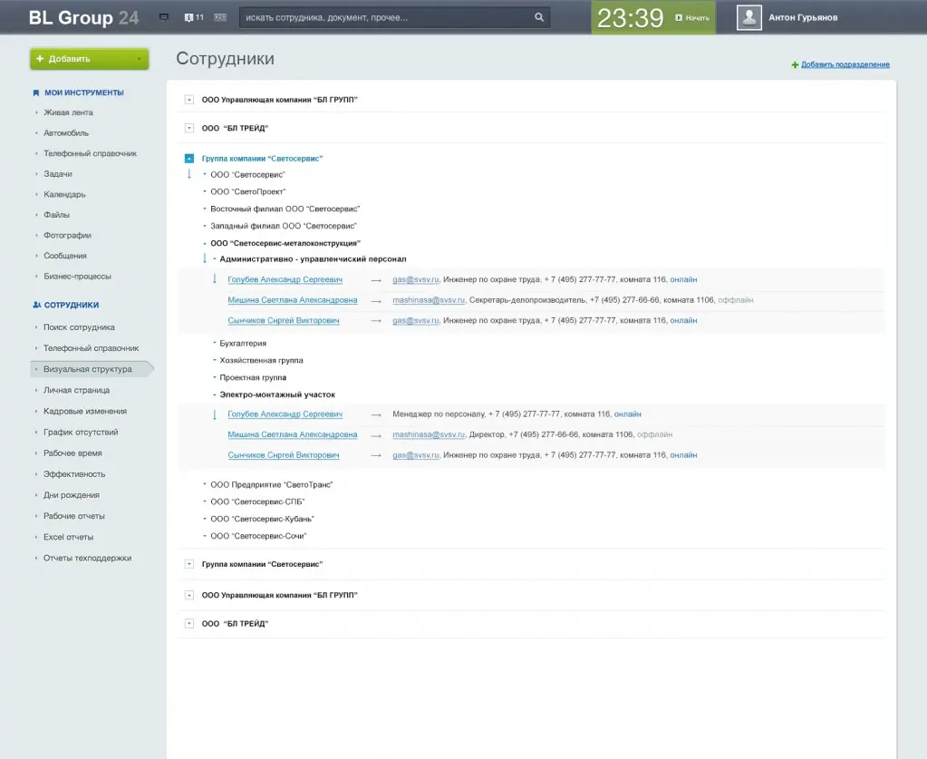 Визуальная структура компании в интранете БЛ ГРУПП