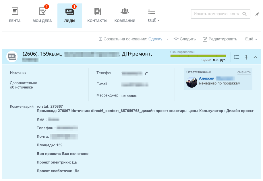 От этих проблем «Ригель Групп» избавляет «Битрикс24». Заявки через форму, чат на сайте или по телефону автоматически и без потерь трансформируются в лиды. Создав лид, «Битрикс24» оповещает менеджера по SMS. Первичная обработка отсеивает 10% лидов, остальные преобразуются в сделки.